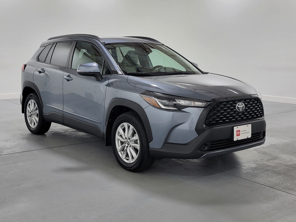 Recent Arrival! With Some Available Options Like 17" Alloy Wheels, 4-Wheel Disc Brakes, 4.014 Axle Ratio, 6 Speakers, ABS brakes, Air Conditioning, Alloy wheels, AM/FM radio: SiriusXM, Apple CarPlay/Android Auto, Auto High-beam Headlights, Automatic temperature control, Brake assist, Bumpers: body-color, Delay-off headlights, Driver door bin, Driver vanity mirror, Dual front impact airbags, Dual front side impact airbags, Electronic Stability Control, Emergency communication system: Safety Connect with 1-year trial, Exterior Parking Camera Rear, Fabric Seat Trim, Four wheel independent suspension, Front anti-roll bar, Front Bucket Seats, Front Center Armrest, Front reading lights, Fully automatic headlights, Heated door mirrors, Illuminated entry, Knee airbag, Leather steering wheel, Low tire pressure warning, Occupant sensing airbag, Outside temperature display, Overhead airbag, Panic alarm, Passenger door bin, Passenger vanity mirror, Power door mirrors, Power steering, Power windows, Radio data system, Radio: 6 Speaker Audio, Rear anti-roll bar, Rear side impact airbag, Rear window defroster, Rear window wiper, Remote keyless entry, Roof rack: rails only, Security system, Speed control, Split folding rear seat, Spoiler, Steering wheel mounted audio controls, Tachometer, Telescoping steering wheel, Tilt steering wheel, Traction control, Trip computer, Turn signal indicator mirrors, and Variably intermittent wipers. Celestite 2022 Toyota Corolla Cross LE 4D Sport Utility 2.0L I4 PDI DOHC 16V LEV3-SULEV30 169hp 29/32 City/Highway MPG AWD Automatic