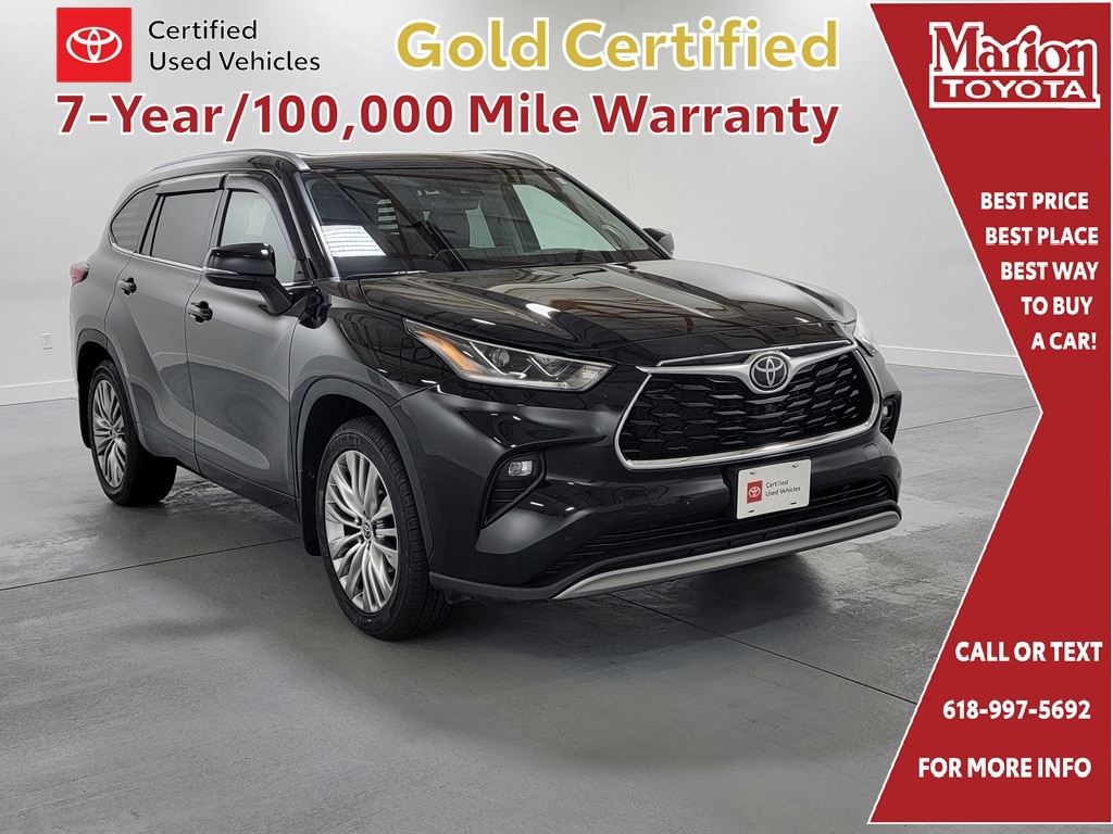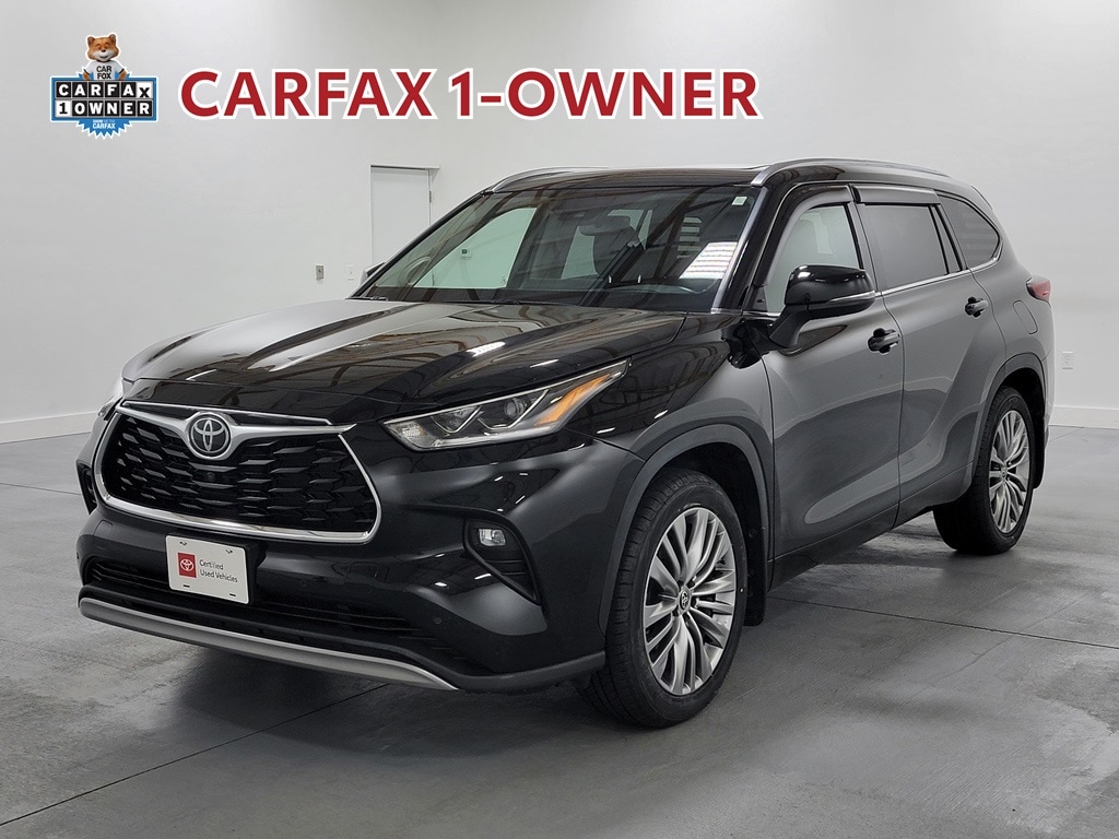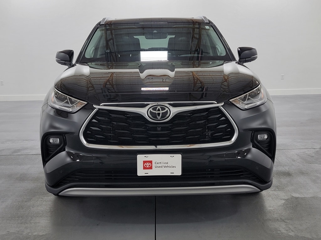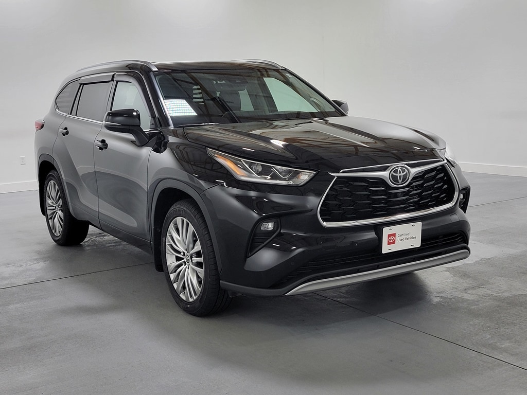 Recent Arrival! With Some Available Options Like 11 Speakers, 20" Painted Alloy Wheels, 3.003 Axle Ratio, 3rd row seats: split-bench, 4-Wheel Disc Brakes, ABS brakes, Air Conditioning, Alloy wheels, AM/FM radio: SiriusXM, Apple CarPlay/Android Auto, Auto High-beam Headlights, Auto-dimming Rear-View mirror, Automatic temperature control, Brake assist, Bumpers: body-color, Delay-off headlights, Digital Rearview Mirror w/HomeLink, Driver door bin, Driver vanity mirror, Dual front impact airbags, Dual front side impact airbags, Electronic Stability Control, Emergency communication system: Safety Connect with 1-year trial, Four wheel independent suspension, Front anti-roll bar, Front Bucket Seats, Front Center Armrest, Front dual zone A/C, Front fog lights, Front reading lights, Fully automatic headlights, Garage door transmitter: HomeLink, Heads-Up Display, Heated door mirrors, Heated front seats, Heated rear seats, Heated steering wheel, Heated/Ventilated Front Bucket Seats, High Grade LED Projector Headlights, Illuminated entry, Knee airbag, Leather Seat Trim, Leather Shift Knob, Low tire pressure warning, Memory seat, Navigation system: Dynamic Navigation (3-year trial), Occupant sensing airbag, Outside temperature display, Overhead airbag, Overhead console, Panic alarm, Panoramic Moonroof, Panoramic View Monitor, Passenger door bin, Passenger vanity mirror, Power door mirrors, Power driver seat, Power Liftgate, Power moonroof, Power passenger seat, Power steering, Power windows, Radio: Premium Audio w/JBL Clari-Fi, Rain sensing wipers, Rear air conditioning, Rear anti-roll bar, Rear reading lights, Rear window defroster, Rear window wiper, Reclining 3rd row seat, Remote keyless entry, Roof rack: rails only, Security system, Speed control, Speed-sensing steering, Split folding rear seat, Spoiler, Steering wheel mounted audio controls, Tachometer, Telescoping steering wheel, Tilt steering wheel, Traction control, Trip computer, Turn signal indicator mirrors, Variably intermittent wipers, and Ventilated front seats. Black 2022 Toyota Highlander Platinum 4D Sport Utility 3.5L V6 DOHC 20/27 City/Highway MPG AWD Automatic