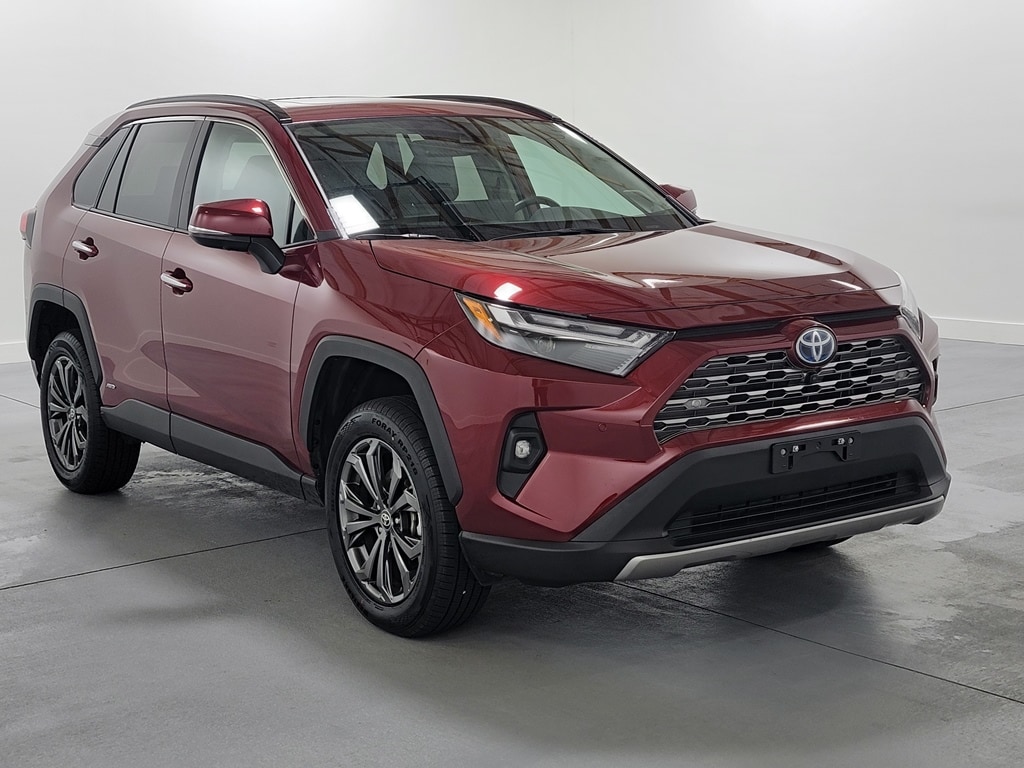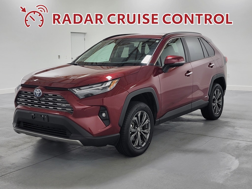 With Some Available Options Like 11 Speakers, 4-Wheel Disc Brakes, ABS brakes, Air Conditioning, Alloy wheels, AM/FM radio: SiriusXM, Auto High-beam Headlights, Auto-dimming Rear-View mirror, Automatic temperature control, Axle Ratio: TBD, Brake assist, Bumpers: body-color, Delay-off headlights, Driver door bin, Driver vanity mirror, Dual front impact airbags, Dual front side impact airbags, Electronic Stability Control, Emergency communication system: Safety Connect (1-year trial), Four wheel independent suspension, Front anti-roll bar, Front Bucket Seats, Front Center Armrest, Front dual zone A/C, Front fog lights, Front reading lights, Fully automatic headlights, Garage door transmitter: HomeLink, Heated door mirrors, Heated front seats, Heated/Ventilated Front Bucket Seats, Illuminated entry, JBL Audio System, Knee airbag, Lane Departure Warning System, Leather Shift Knob, Low tire pressure warning, Memory seat, Occupant sensing airbag, Outside temperature display, Overhead airbag, Overhead console, Panic alarm, Passenger door bin, Passenger vanity mirror, Power door mirrors, Power driver seat, Power Liftgate, Power moonroof, Power steering, Power windows, Radio data system, Rear anti-roll bar, Rear seat center armrest, Rear window defroster, Rear window wiper, Remote keyless entry, Security system, SofTex Seat Trim, Speed control, Speed-sensing steering, Split folding rear seat, Spoiler, Steering wheel mounted audio controls, Telescoping steering wheel, Tilt steering wheel, Traction control, Trip computer, Turn signal indicator mirrors, Variably intermittent wipers, Ventilated front seats, and Wheels: 18" x 7.0J Silver Aluminum Alloy. Red 2023 Toyota RAV4 Hybrid Limited 4D Sport Utility 2.5L 4-Cylinder 41/38 City/Highway MPG AWD Automatic