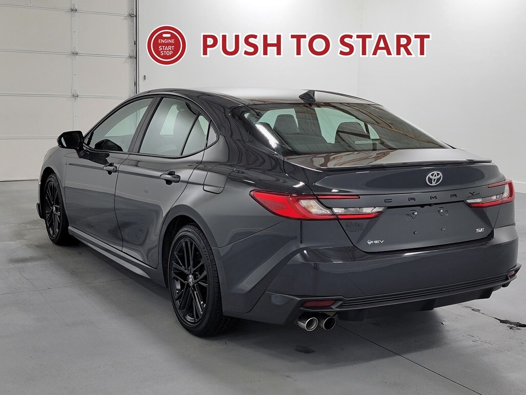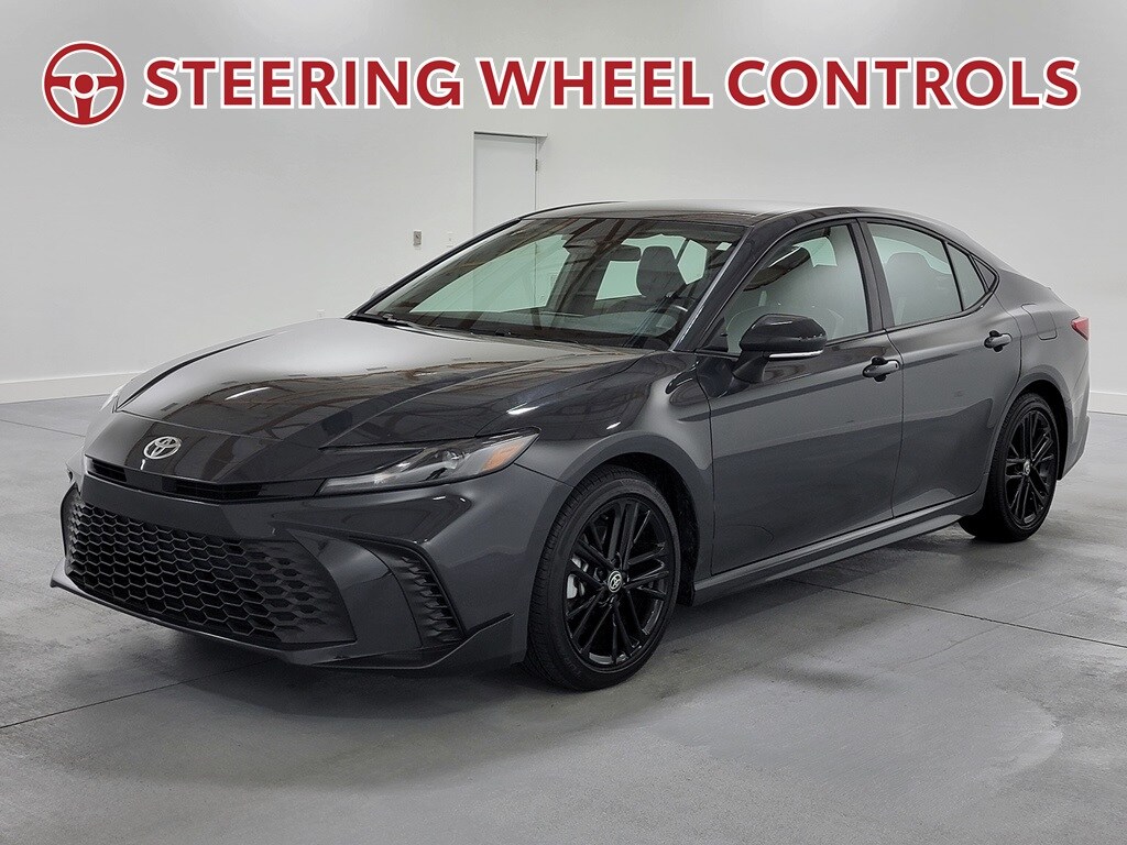 With Some Available Options Like 4-Wheel Disc Brakes, 6 Speakers, ABS brakes, Air Conditioning, Alloy wheels, AM/FM radio: SiriusXM, Apple CarPlay/Android Auto, Auto High-beam Headlights, Automatic temperature control, Brake assist, Bumpers: body-color, Delay-off headlights, Driver door bin, Driver vanity mirror, Dual front impact airbags, Dual front side impact airbags, Electronic Stability Control, Emergency communication system: Safety Connect (up to 10-year trial subscription), Exterior Parking Camera Rear, Four wheel independent suspension, Front anti-roll bar, Front Bucket Seats, Front Center Armrest, Front dual zone A/C, Front reading lights, Fully automatic headlights, Heated door mirrors, Illuminated entry, Knee airbag, Leather Shift Knob, Leather steering wheel, Low tire pressure warning, Occupant sensing airbag, Outside temperature display, Overhead airbag, Overhead console, Panic alarm, Passenger door bin, Passenger vanity mirror, Power door mirrors, Power driver seat, Power steering, Power windows, Radio data system, Radio: Toyota Audio Multimedia w/12.3" Touchscreen, Radio: Toyota Audio Multimedia w/8" Touchscreen, Rear anti-roll bar, Rear reading lights, Rear seat center armrest, Rear side impact airbag, Rear window defroster, Remote keyless entry, Security system, SofTex & Fabric Seat Trim, Speed control, Speed-sensing steering, Split folding rear seat, Spoiler, Steering wheel mounted audio controls, Telescoping steering wheel, Tilt steering wheel, Traction control, Trip computer, Turn signal indicator mirrors, Variably intermittent wipers, and Wheels: 18" Black-Finished Alloy. Gray 2025 Toyota Camry SE 4D Sedan 2.5L 4-Cylinder 16V DOHC 48/47 City/Highway MPG FWD Automatic