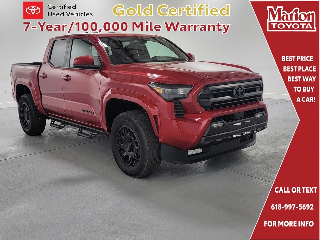 Recent Arrival! With Some Available Options Like 3.583 Axle Ratio, 4-Wheel Disc Brakes, 6 Speakers, ABS brakes, Air Conditioning, Alloy wheels, AM/FM radio: SiriusXM, Anti-whiplash front head restraints, Apple CarPlay/Android Auto, Auto High-beam Headlights, Auto-dimming Rear-View mirror, Brake assist, Bumpers: body-color, Driver door bin, Dual front impact airbags, Dual front side impact airbags, Electronic Stability Control, Emergency communication system: Safety Connect (1-year trial), Exterior Parking Camera Rear, Fabric Seat Trim, Four wheel independent suspension, Front anti-roll bar, Front Bucket Seats, Front Center Armrest, Front fog lights, Front reading lights, Fully automatic headlights, Heated door mirrors, Illuminated entry, JBL Premium Audio, Knee airbag, Low tire pressure warning, Occupant sensing airbag, Outside temperature display, Overhead airbag, Overhead console, Panic alarm, Passenger door bin, Power door mirrors, Power steering, Power windows, Radio: 8" Toyota Audio Multimedia, Rear step bumper, Rear window defroster, Remote keyless entry, Speed control, Speed-sensing steering, Split folding rear seat, Steering wheel mounted audio controls, Tachometer, Telescoping steering wheel, Tilt steering wheel, Traction control, Trip computer, Variably intermittent wipers, and Wheels: 17" Styled Alloy. Red 2025 Toyota Tacoma SR5 4D Double Cab 2.4L 4-Cylinder 19/24 City/Highway MPG 4WD Automatic