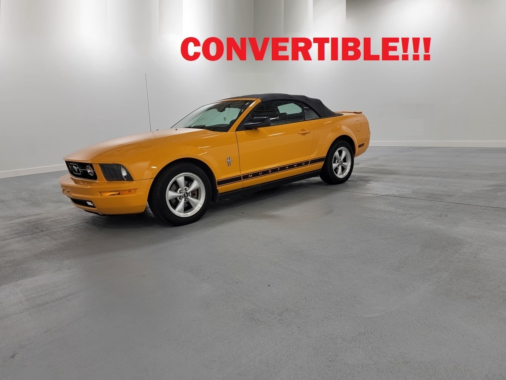 Recent Arrival! With Some Available Options Like 16" Painted Aluminum Wheels w/Chrome Spinner, 4-Wheel Disc Brakes, 6-Way Power Adjustable Driver Seat, Air Conditioning, Alloy wheels, AM/FM radio, Bumpers: body-color, CD player, Convertible roof lining, Driver door bin, Driver vanity mirror, Dual front impact airbags, Fabric Bucket Seats, Front anti-roll bar, Front Bucket Seats, Front Center Armrest, Front reading lights, Front wheel independent suspension, Glass rear window, Illuminated entry, Low tire pressure warning, Occupant sensing airbag, Panic alarm, Passenger door bin, Passenger vanity mirror, Power convertible roof, Power door mirrors, Power steering, Power windows, Rear window defroster, Remote keyless entry, Speed control, Tachometer, Tilt steering wheel, and Variably intermittent wipers. Orange 2007 Ford Mustang V6 Deluxe 2D Convertible 4.0L V6 SOHC 18/26 City/Highway MPG RWD Automatic