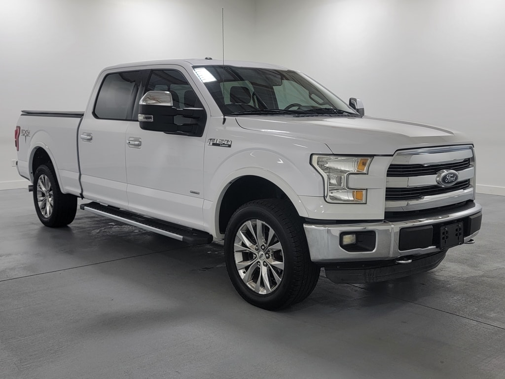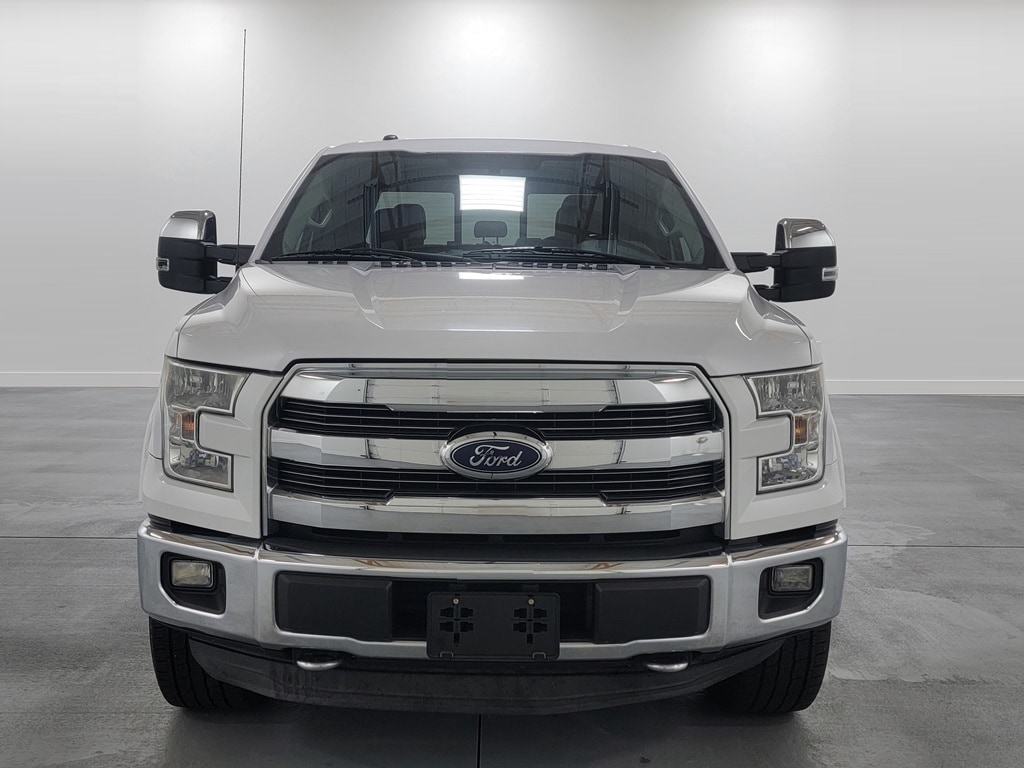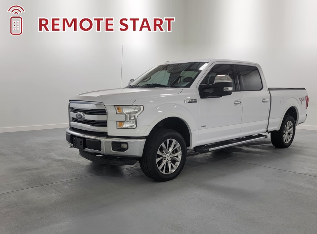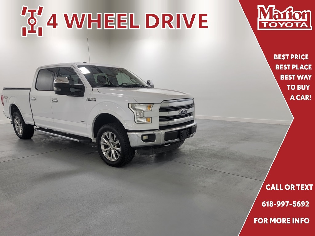 With Some Available Options Like Equipment Group 501A Mid (110V/400W Outlet, BLIS Blind Spot Information System, LED Side-Mirror Spotlights, Power Glass Sideview Mirr w/Body-Color Skull Caps, Remote Start System, Reverse Sensing System, and Universal Garage Door Opener), FX4 Off-Road Package (4x4 FX4 Off-Road Decal, Front & Rear Off-Road Tuned Shock Absorbers, and Hill Descent Control), GVWR: 6,500 lbs Payload Package, Lariat Chrome Appearance Package (Chrome 3-Bar Style Grille w/Chrome Surround, Chrome Angular Step Bars, Chrome Door Handles w/Body-Color Bezel, Chrome Skull Caps on Exterior Mirrors, Single-Tip Chrome Exhaust, and Wheels: 18" Chrome-Like PVD), Max Trailer Tow Package (Auxiliary Transmission Oil Cooler, Class IV Trailer Hitch Receiver, Integrated Trailer Brake Controller, and Upgraded Front Stabilizer Bar), 18" Machined-Aluminum Wheels, 4-Wheel Disc Brakes, 7 Speakers, ABS brakes, Adjustable pedals, Air Conditioning, All-Weather Rubber Floor Mats, Alloy wheels, AM/FM radio: SiriusXM, Auto-dimming door mirrors, Auto-dimming Rear-View mirror, Automatic temperature control, Brake assist, Bumpers: chrome, CD player, Compass, Delay-off headlights, Driver door bin, Driver vanity mirror, Dual front impact airbags, Dual front side impact airbags, Electronic Stability Control, Exterior Parking Camera Rear, Front anti-roll bar, Front Center Armrest w/Storage, Front dual zone A/C, Front fog lights, Front License Plate Bracket, Front reading lights, Front wheel independent suspension, Fully automatic headlights, Heated door mirrors, Heated front seats, Illuminated entry, Leather-Trimmed 40/20/40 Front Seat, Low tire pressure warning, Memory seat, Occupant sensing airbag, Outside temperature display, Overhead airbag, Overhead console, Panic alarm, Passenger door bin, Passenger vanity mirror, Pedal memory, Power door mirrors, Power driver seat, Power passenger seat, Power steering, Power windows, Radio data system, Radio: Single-CD w/SiriusXM Satellite, Rear reading lights, Rear seat center armrest, Rear step bumper, Rear window defroster, Remote keyless entry, Security system, Speed control, Speed-sensing steering, Split folding rear seat, Spray-In Bedliner (Pre-Installed), Steering wheel mounted audio controls, SYNC with MyFord Touch, Tachometer, Tailgate Step w/Tailgate Lift Assist, Telescoping Power Glass Trailer Tow Mirrors w/Heat, Telescoping steering wheel, Tilt steering wheel, Traction control, Trip computer, Turn signal indicator mirrors, Variably intermittent wipers, Ventilated front seats, Voice-Activated Navigation, Voltmeter, and Wheels: 20" Chrome-Like PVD. Oxford White 2015 Ford F-150 Lariat 4D SuperCrew 3.5L V6 17/23 City/Highway MPG 4WD Automatic