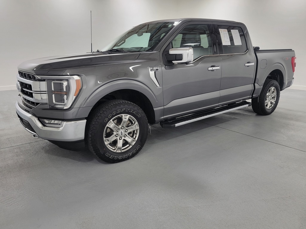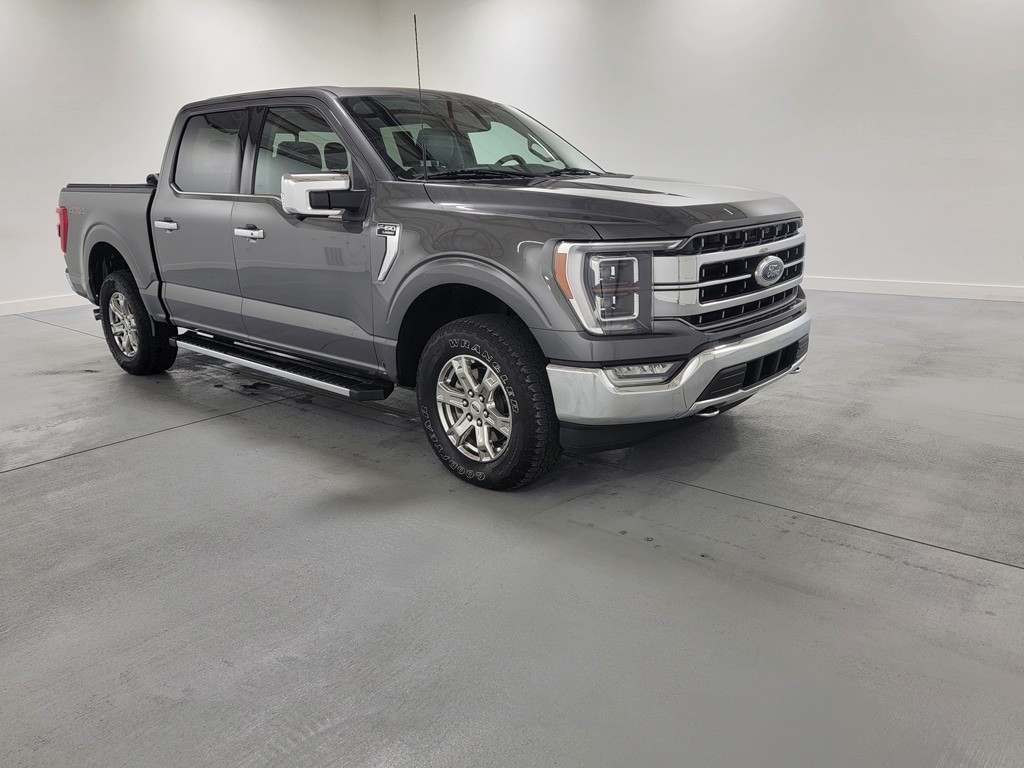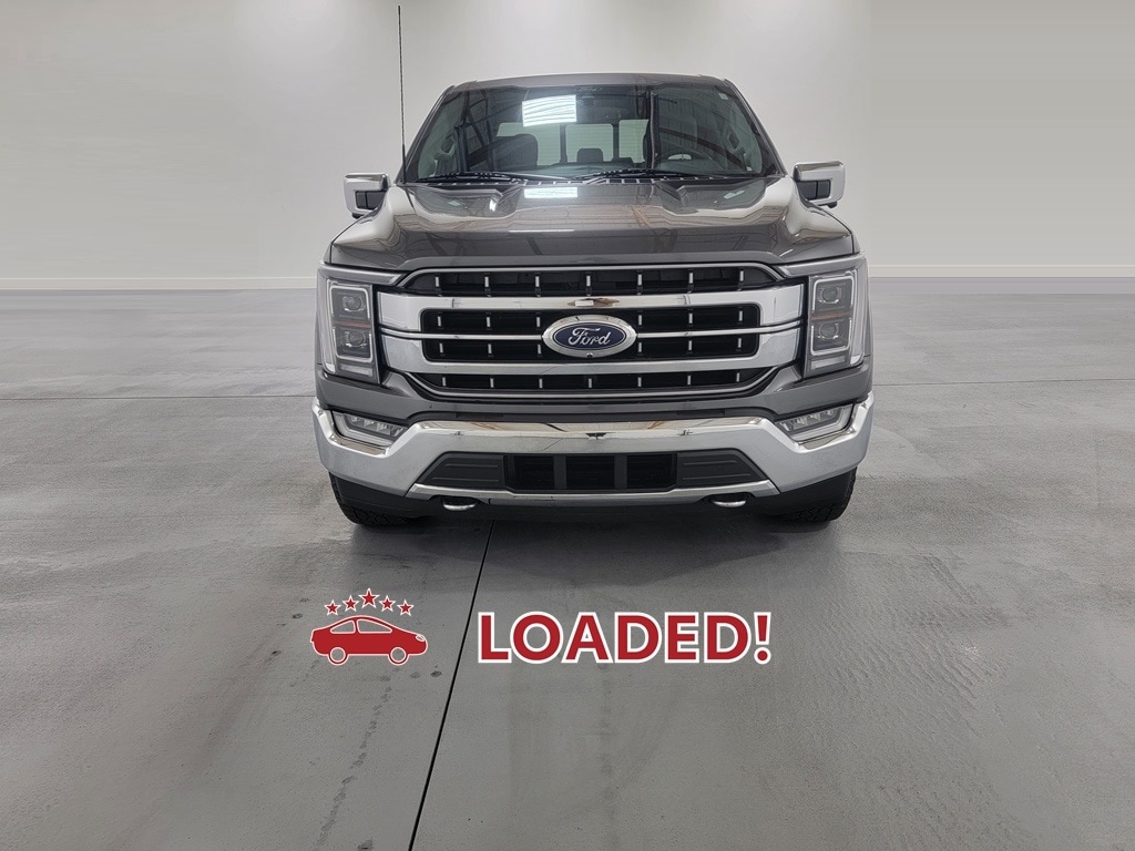 With Some Available Options Like Equipment Group 502A High (2nd Row Heated Seats, Heated Steering Wheel, Leather-Trimmed Bucket Seats, LED Projector w/Dynamic Bending Headlamps, Power Glass Sideview Mirr w/Chrome Skull Caps, Power Tilt/Telescoping Steering Column w/Memory, Rain-Sensing Wipers, and Universal Garage Door Opener), GVWR: 6,600 lbs Payload Package, Lariat Chrome Appearance Package (6" Chrome Running Board, Chrome 2-Bar Grille w/4 Minor Bars, and Chrome Skull Caps on Exterior Mirrors), Tow Technology Package (Integrated Trailer Brake Controller and Pro Trailer Backup Assist), 18" Machined-Aluminum Wheels, 3.55 Axle Ratio, 4-Wheel Disc Brakes, 7 Speakers, ABS brakes, Adjustable pedals, Air Conditioning, Alloy wheels, AM/FM radio: SiriusXM with 360L, Auto High-beam Headlights, Auto Start-Stop Removal, Auto-dimming door mirrors, Auto-dimming Rear-View mirror, Automatic temperature control, Brake assist, Bumpers: chrome, Class IV Trailer Hitch Receiver, Compass, Delay-off headlights, Driver door bin, Driver vanity mirror, Dual front impact airbags, Dual front side impact airbags, Electronic Stability Control, Emergency communication system: SYNC 4 911 Assist, Exterior Parking Camera Rear, Front anti-roll bar, Front Center Armrest w/Storage, Front dual zone A/C, Front fog lights, Front License Plate Bracket, Front reading lights, Front wheel independent suspension, Fully automatic headlights, Heated door mirrors, Heated front seats, Illuminated entry, Interior Work Surface, Leather-Trimmed 40/20/40 Front Seat, Low tire pressure warning, Memory seat, Navigation system: Connected Navigation (90-Day Trial), Occupant sensing airbag, Outside temperature display, Overhead airbag, Overhead console, Panic alarm, Partitioned Lockable Fold-Flat Storage, Passenger door bin, Passenger vanity mirror, Pedal memory, Power door mirrors, Power driver seat, Power passenger seat, Power steering, Power windows, Radio data system, Radio: AM/FM SiriusXM w/360L, Rear reading lights, Rear seat center armrest, Rear step bumper, Rear window defroster, Remote keyless entry, Security system, Speed control, Speed-sensing steering, Split folding rear seat, Steering wheel mounted audio controls, SYNC 4 w/Enhanced Voice Recognition, Tachometer, Telescoping steering wheel, Tilt steering wheel, Traction control, Trip computer, Turn signal indicator mirrors, Twin Panel Moonroof, Variably intermittent wipers, Ventilated front seats, and Voltmeter. Gray Metallic 2021 Ford F-150 Lariat 4D SuperCrew 2.7L V6 EcoBoost 18/24 City/Highway MPG 4WD Automatic