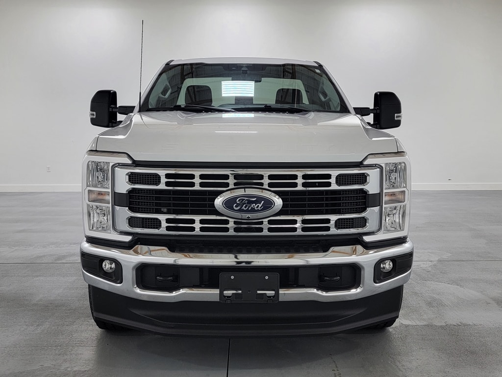 With Some Available Options Like 360-Degree Camera Package (BLIS w/Cross-Traffic Alert, LED Center High-Mounted Stop Lamp (CHMSL) Camera, and Rear Parking Sensors), FX4 Off-Road Package (Hill Descent Control, Off-Road Specifically Tuned Shock Absorbers, and Unique FX4 Off-Road Box Decal), GVWR: 10,900 lb Payload Package, Heavy-Service Front Suspension Package, Tow Technology Package (Pro Trailer Backup Assist and Pro Trailer Hitch Assist), 190 Amp Alternator, 4 Speakers, 4-Wheel Disc Brakes, 410 Amp Dual Alternators, ABS brakes, Air Conditioning, AM/FM radio, Brake assist, Cloth 40/20/40 Split Bench Seat, Compass, Delay-off headlights, Dual 68 AH/65 AGM Batteries, Dual front impact airbags, Dual front side impact airbags, Electronic Stability Control, Emergency communication system: SYNC 4 911 Assist, Engine Block Heater, Exterior Parking Camera Rear, Front anti-roll bar, Front Center Armrest w/Storage, Front reading lights, Fully automatic headlights, Heated door mirrors, Illuminated entry, Low tire pressure warning, Outside temperature display, Overhead airbag, Overhead console, Panic alarm, Passenger cancellable airbag, Passenger vanity mirror, Platform Running Boards, Power door mirrors, Power steering, Power windows, Rear step bumper, Remote keyless entry, Speed control, Steering wheel mounted audio controls, SYNC 4, Tachometer, Telescoping steering wheel, Tilt steering wheel, Traction control, Trip computer, Turn signal indicator mirrors, Upfitter Switches (6), and Variably intermittent wipers. Oxford White 2023 Ford F-350SD XLT 2D Standard Cab Power Stroke 6.7L V8 DI 32V OHV Turbodiesel 4WD Automatic