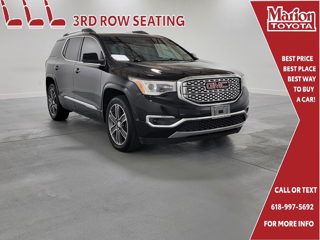 With Some Available Options Like Floor Liner Package (LPO) (3rd Row All-Weather Floor Liner (LPO) and All-Weather Floor Liner (LPO)), Preferred Equipment Group 5SA (Electronic Cruise Control w/Set & Resume Speed), 3.16 Axle Ratio, 3rd row seats: split-bench, 4-Wheel Disc Brakes, 6-Passenger (2-2-2 Seating Configuration), 8 Speakers, ABS brakes, Air Conditioning, Alloy wheels, AM/FM radio: SiriusXM, Apple CarPlay/Android Auto, Auto High-beam Headlights, Auto-dimming door mirrors, Auto-dimming Rear-View mirror, Automatic temperature control, Brake assist, Bumpers: body-color, Compass, Delay-off headlights, Driver door bin, Driver vanity mirror, Dual front impact airbags, Dual front side impact airbags, Dual SkyScape 2-Panel Power Sunroof, Electronic Stability Control, Emergency communication system: OnStar Guidance, Exterior Parking Camera Rear, Four wheel independent suspension, Front anti-roll bar, Front Bucket Seats, Front Center Armrest, Front dual zone A/C, Front fog lights, Front reading lights, Fully automatic headlights, Garage door transmitter, Heated door mirrors, Heated front seats, Heated rear seats, Heated steering wheel, High-Intensity Discharge Headlights, Illuminated entry, Knee airbag, Low tire pressure warning, Memory seat, Navigation System, Occupant sensing airbag, Outside temperature display, Overhead airbag, Overhead console, Panic alarm, Passenger door bin, Passenger vanity mirror, Perforated Leather-Appointed Seat Trim, Power door mirrors, Power driver seat, Power Liftgate, Power passenger seat, Power steering, Power windows, Premium audio system: IntelliLink, Radio data system, Radio: AM/FM 8" Diagonal Color Touch Navigation, Rear air conditioning, Rear anti-roll bar, Rear reading lights, Rear window defroster, Rear window wiper, Remote keyless entry, Roof rack: rails only, Security system, SiriusXM Satellite Radio, Speed control, Speed-sensing steering, Spoiler, Steering wheel mounted audio controls, Tachometer, Telescoping steering wheel, Tilt steering wheel, Traction control, Trip computer, Variably intermittent wipers, Ventilated front seats, Voltmeter, and Wheels: 20" x 8" Polished Aluminum (4) Ebony Twilight Metallic 2017 GMC Acadia Denali 4D Sport Utility 3.6L V6 SIDI DOHC VVT 18/25 City/Highway MPG FWD Automatic