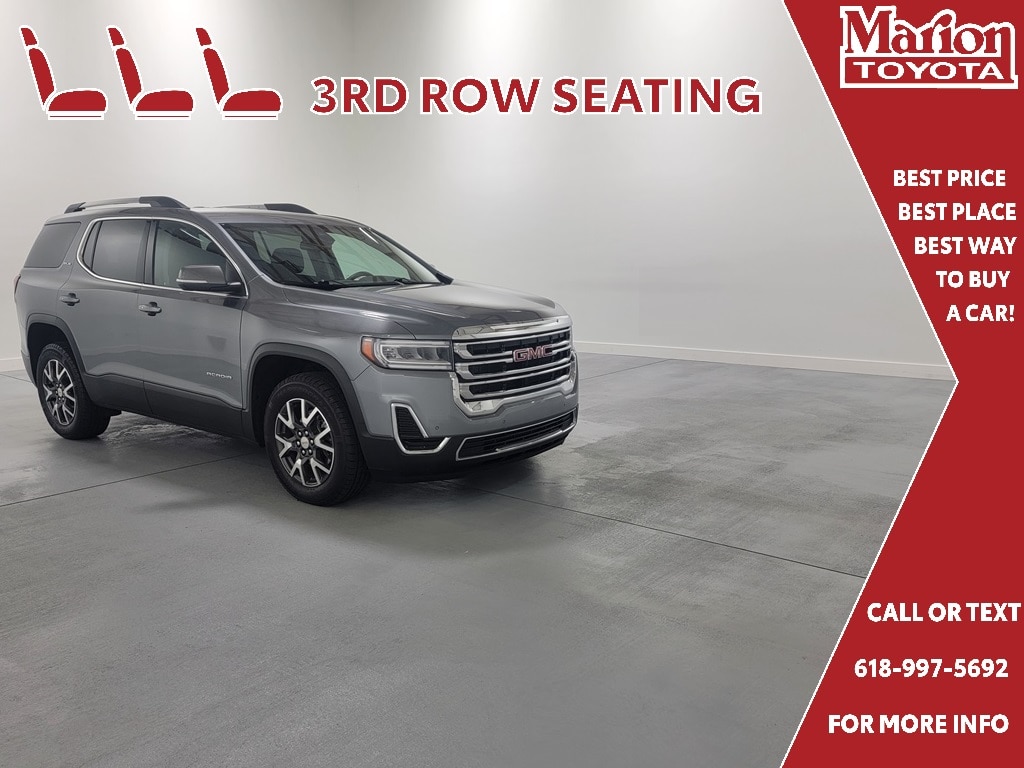 With Some Available Options Like Driver Convenience Package (120-Volt Power Outlet, 8-Way Power Driver Seat Adjuster, Brushed Aluminum Roof Rails, Hands Free Power Programmable Liftgate, Heated Driver & Front Passenger Seats, Power Driver Lumbar Control Seat Adjuster, and Remote Start), Floor Liner Package (LPO) (1st & 2nd Row All-Weather Floor Liner (LPO), 3rd Row All-Weather Floor Liner (LPO), and Integrated Cargo Liner (LPO)), Preferred Equipment Group 3SA, 155 Amp Alternator, 3rd row seats: split-bench, 4-Way Manual Driver Seat Adjuster, 4-Way Manual Passenger Seat Adjuster, 4-Wheel Disc Brakes, 6 Speakers, 6-Passenger (2-2-2 Seating Configuration), 6-Speaker Audio System Feature, ABS brakes, Air Conditioning, Alloy wheels, AM/FM radio: SiriusXM, Apple CarPlay/Android Auto, Automatic Emergency Braking, Automatic temperature control, Brake assist, Bright Wheel Locks (LPO), Bumpers: body-color, Compass, Delay-off headlights, Driver door bin, Driver vanity mirror, Dual front impact airbags, Dual front side impact airbags, Electronic Stability Control, Emergency communication system: OnStar and GMC connected services capable, Following Distance Indicator, Forward Collision Alert, Four wheel independent suspension, Front & Rear Park Assist, Front anti-roll bar, Front Bucket Seats, Front Center Armrest, Front dual zone A/C, Front Pedestrian Braking, Front reading lights, Fully automatic headlights, Heated door mirrors, Illuminated entry, IntelliBeam Automatic High-Beam Headlamps, Knee airbag, Lane Keep Assist w/Lane Departure Warning, Low tire pressure warning, Occupant sensing airbag, Outside temperature display, Overhead airbag, Overhead console, Panic alarm, Passenger door bin, Passenger vanity mirror, Power door mirrors, Power steering, Power windows, Premium audio system: GMC Infotainment System, Premium Cloth Seat Trim, Radio data system, Radio: AM/FM w/8" Diagonal Multi-Touch Display, Rear air conditioning, Rear anti-roll bar, Rear reading lights, Rear window defroster, Rear window wiper, Remote keyless entry, Security system, SiriusXM Radio, Speed control, Speed-sensing steering, Spoiler, Steering wheel mounted audio controls, Tachometer, Telescoping steering wheel, Tilt steering wheel, Traction control, Trip computer, Turn signal indicator mirrors, Variably intermittent wipers, Voltmeter, Wheels: 18" Machined Aluminum w/Dark Accents, and Wireless Apple CarPlay/Wireless Android Auto. Satin Steel Metallic 2021 GMC Acadia SLE 4D Sport Utility 3.6L V6 SIDI 19/27 City/Highway MPG FWD Automatic