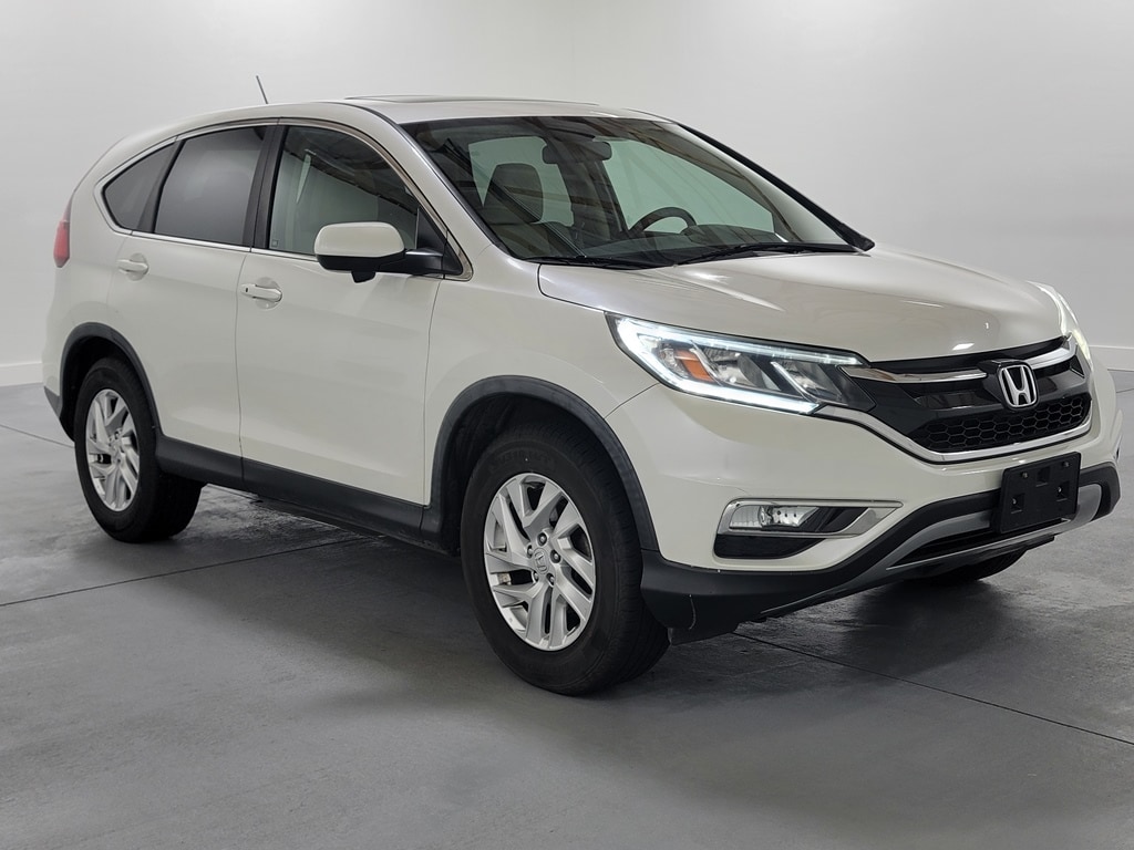 With Some Available Options Like 17" Alloy Wheels, 4-Wheel Disc Brakes, 5.048 Axle Ratio, 6 Speakers, ABS brakes, Air Conditioning, Alloy wheels, AM/FM radio, AM/FM/CD Audio System w/6 Speakers, Brake assist, Bumpers: body-color, CD player, Cloth Seat Trim, Compass, Delay-off headlights, Driver door bin, Driver vanity mirror, Dual front impact airbags, Dual front side impact airbags, Electronic Stability Control, Exterior Parking Camera Rear, Four wheel independent suspension, Front anti-roll bar, Front Bucket Seats, Front Center Armrest, Front fog lights, Front reading lights, Heated Front Bucket Seats, Heated front seats, Illuminated entry, Low tire pressure warning, Occupant sensing airbag, Outside temperature display, Overhead airbag, Overhead console, Panic alarm, Passenger door bin, Passenger vanity mirror, Power door mirrors, Power driver seat, Power moonroof, Power steering, Power windows, Radio data system, Rear anti-roll bar, Rear seat center armrest, Rear window defroster, Rear window wiper, Remote keyless entry, Security system, Speed control, Speed-sensing steering, Speed-Sensitive Wipers, Split folding rear seat, Steering wheel mounted audio controls, Tachometer, Telescoping steering wheel, Tilt steering wheel, Traction control, Trip computer, and Variably intermittent wipers. White 2015 Honda CR-V EX 4D Sport Utility 2.4L I4 DOHC 16V i-VTEC 27/34 City/Highway MPG FWD Automatic