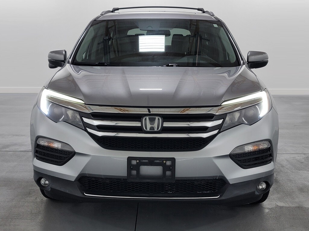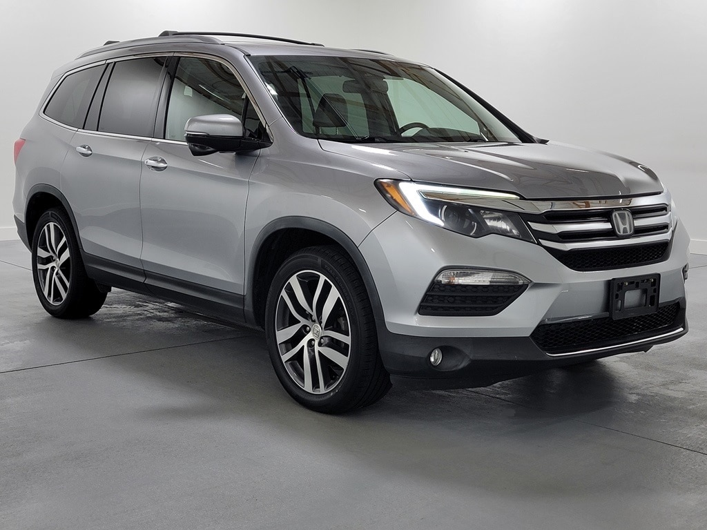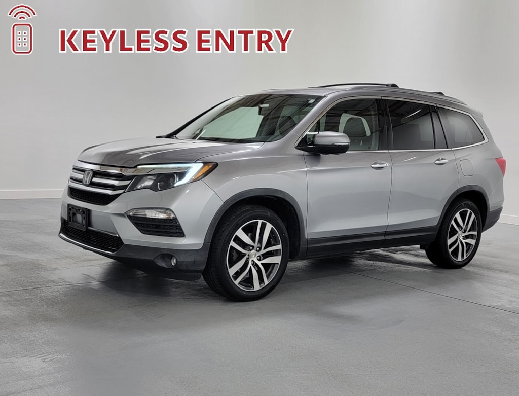 With Some Available Options Like 10 Speakers, 20" Alloy Wheels, 3rd row seats: split-bench, 4-Wheel Disc Brakes, 4.334 Axle Ratio, A/V remote, ABS brakes, Air Conditioning, Alloy wheels, AM/FM radio: SiriusXM, Apple CarPlay/Android Auto, Auto-dimming Rear-View mirror, Automatic temperature control, Brake assist, Bumpers: body-color, Compass, Delay-off headlights, Driver door bin, Driver vanity mirror, Dual front impact airbags, Dual front side impact airbags, Electronic Stability Control, Emergency communication system: HondaLink Assist, Exterior Parking Camera Rear, Four wheel independent suspension, Front anti-roll bar, Front Bucket Seats, Front Center Armrest, Front dual zone A/C, Front fog lights, Front reading lights, Fully automatic headlights, Garage door transmitter: HomeLink, Headphones, Heated door mirrors, Heated Front Bucket Seats, Heated front seats, Honda Satellite-Linked Navigation System, Illuminated entry, Leather Shift Knob, Leather-Trimmed Seats, Low tire pressure warning, Memory seat, Navigation System, Occupant sensing airbag, Outside temperature display, Overhead airbag, Overhead console, Panic alarm, Passenger door bin, Passenger vanity mirror, Power door mirrors, Power driver seat, Power Liftgate, Power moonroof, Power passenger seat, Power steering, Power windows, Radio data system, Radio: AM/FM Premium Audio System, Rear air conditioning, Rear anti-roll bar, Rear audio controls, Rear reading lights, Rear seat center armrest, Rear window defroster, Rear window wiper, Remote keyless entry, Roof rack: rails only, Security system, SiriusXM Radio, Speed control, Speed-sensing steering, Speed-Sensitive Wipers, Split folding rear seat, Spoiler, Steering wheel mounted audio controls, Tachometer, Telescoping steering wheel, Tilt steering wheel, Traction control, Trip computer, Turn signal indicator mirrors, and Variably intermittent wipers. Silver 2017 Honda Pilot Touring 4D Sport Utility 3.5L V6 24V SOHC i-VTEC 19/26 City/Highway MPG AWD Automatic