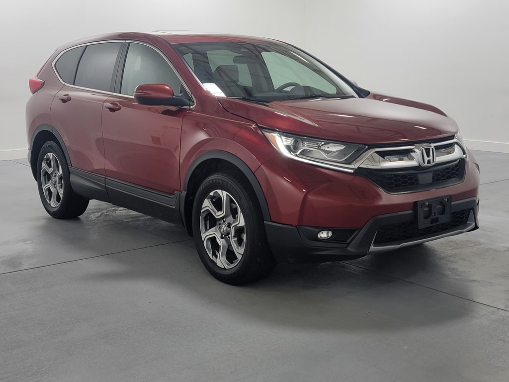 With Some Available Options Like 18" Alloy Wheels, 4-Wheel Disc Brakes, 5.64 Axle Ratio, 6 Speakers, ABS brakes, Air Conditioning, Alloy wheels, AM/FM radio: SiriusXM, Apple CarPlay/Android Auto, Auto High-beam Headlights, Automatic temperature control, Blind Spot Information (BSI) System warning, Brake assist, Bumpers: body-color, Cloth Seat Trim, Compass, Delay-off headlights, Driver door bin, Driver vanity mirror, Dual front impact airbags, Dual front side impact airbags, Electronic Stability Control, Exterior Parking Camera Rear, Four wheel independent suspension, Front anti-roll bar, Front Bucket Seats, Front Center Armrest, Front dual zone A/C, Front fog lights, Front reading lights, Fully automatic headlights, Heated door mirrors, Heated Front Bucket Seats, Heated front seats, Illuminated entry, Low tire pressure warning, Occupant sensing airbag, Outside temperature display, Overhead airbag, Overhead console, Panic alarm, Passenger door bin, Passenger vanity mirror, Power door mirrors, Power driver seat, Power moonroof, Power steering, Power windows, Radio data system, Radio: AM/FM Audio System w/6 Speakers, Rear anti-roll bar, Rear seat center armrest, Rear window defroster, Rear window wiper, Remote keyless entry, Security system, Speed control, Speed-sensing steering, Speed-Sensitive Wipers, Split folding rear seat, Spoiler, Steering wheel mounted audio controls, Tachometer, Telescoping steering wheel, Tilt steering wheel, Traction control, Trip computer, Turn signal indicator mirrors, and Variably intermittent wipers. Red 2018 Honda CR-V EX 4D Sport Utility 1.5L I4 DOHC 16V 27/33 City/Highway MPG AWD Automatic