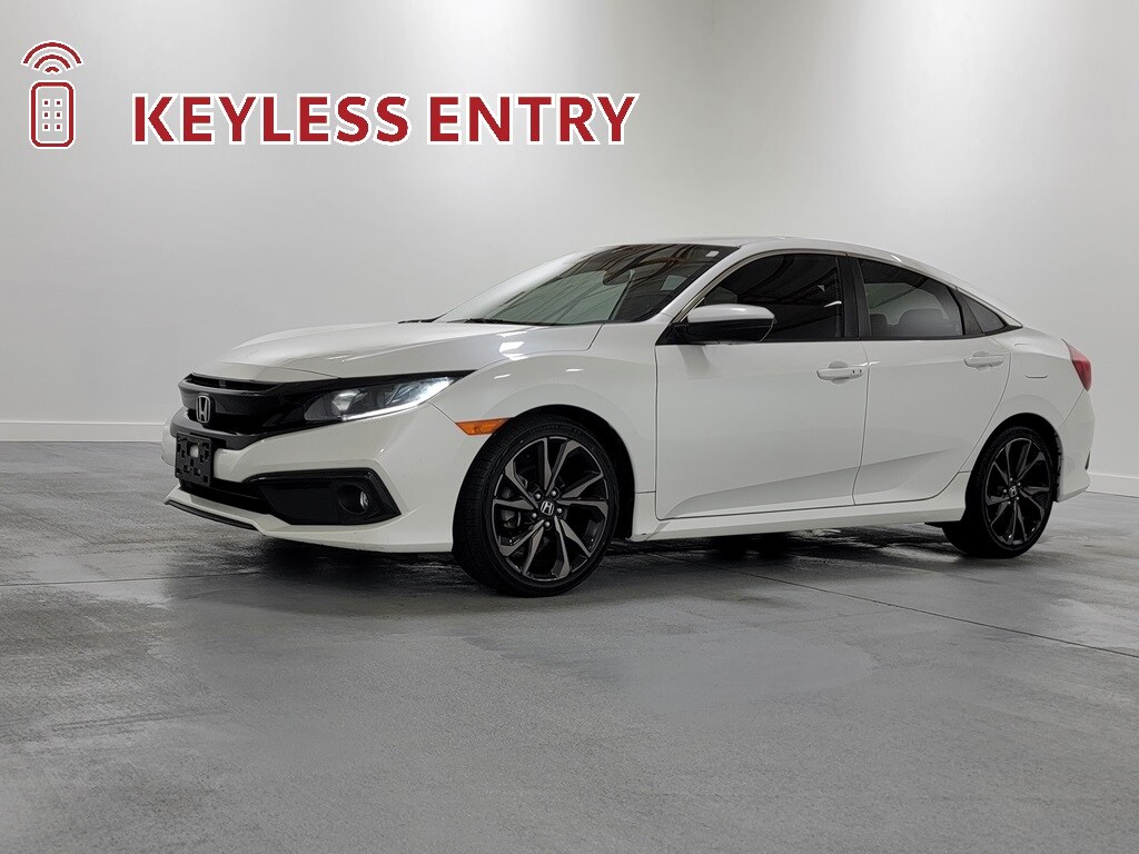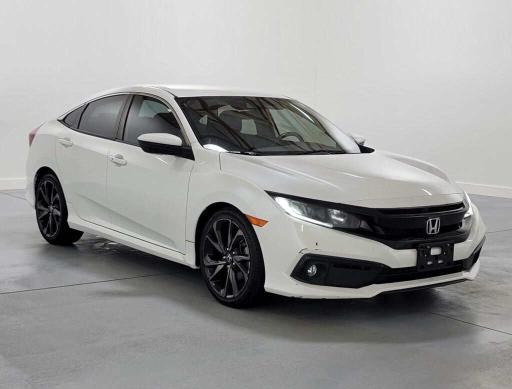 With Some Available Options Like 4-Wheel Disc Brakes, 8 Speakers, ABS brakes, Adaptive Cruise Control: Adaptive Cruise Control (ACC) with Low-Speed Follow, Air Conditioning, Alloy wheels, AM/FM radio, Apple CarPlay/Android Auto, Auto High-beam Headlights, Automatic temperature control, Brake assist, Bumpers: body-color, Cloth Seat Trim, Delay-off headlights, Driver door bin, Driver vanity mirror, Dual front impact airbags, Dual front side impact airbags, Electronic Stability Control, Emergency communication system: HondaLink, Exterior Parking Camera Rear, Forward collision: Collision Mitigation Braking System (CMBS) + FCW mitigation, Four wheel independent suspension, Front anti-roll bar, Front Bucket Seats, Front Center Armrest, Front fog lights, Front reading lights, Fully automatic headlights, Illuminated entry, Lane departure: Lane Keeping Assist System (LKAS) active, Leather Shift Knob, Low tire pressure warning, Occupant sensing airbag, Outside temperature display, Overhead airbag, Panic alarm, Passenger door bin, Passenger vanity mirror, Power door mirrors, Power steering, Power windows, Radio data system, Radio: 180-Watt AM/FM Audio System, Rear anti-roll bar, Rear window defroster, Remote keyless entry, Security system, Speed control, Speed-sensing steering, Split folding rear seat, Spoiler, Steering wheel mounted audio controls, Tachometer, Telescoping steering wheel, Tilt steering wheel, Traction control, Trip computer, and Wheels: 18" Alloy w/Gloss Black Inserts. White 2020 Honda Civic Sport 4D Sedan 2.0L I4 DOHC 16V i-VTEC 29/37 City/Highway MPG FWD Automatic