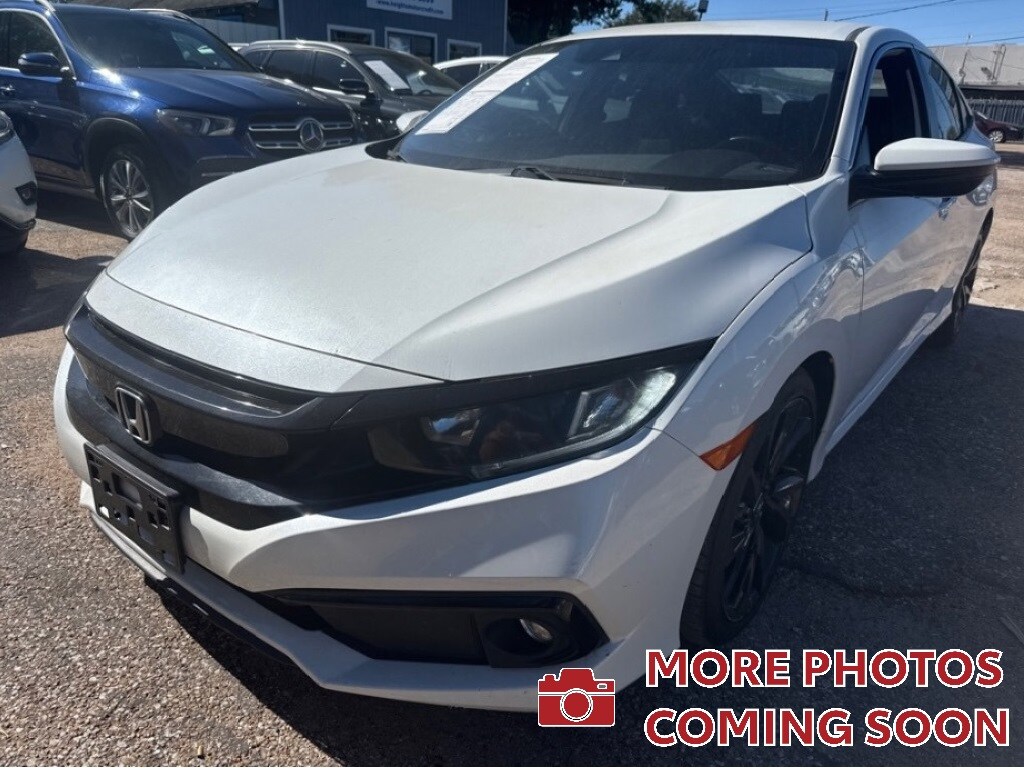 Recent Arrival! With Some Available Options Like 4-Wheel Disc Brakes, 8 Speakers, ABS brakes, Adaptive Cruise Control: Adaptive Cruise Control (ACC) with Low-Speed Follow, Air Conditioning, Alloy wheels, AM/FM radio, Apple CarPlay/Android Auto, Auto High-beam Headlights, Automatic temperature control, Brake assist, Bumpers: body-color, Cloth Seat Trim, Delay-off headlights, Driver door bin, Driver vanity mirror, Dual front impact airbags, Dual front side impact airbags, Electronic Stability Control, Emergency communication system: HondaLink, Exterior Parking Camera Rear, Forward collision: Collision Mitigation Braking System (CMBS) + FCW mitigation, Four wheel independent suspension, Front anti-roll bar, Front Bucket Seats, Front Center Armrest, Front fog lights, Front reading lights, Fully automatic headlights, Illuminated entry, Lane departure: Lane Keeping Assist System (LKAS) active, Leather Shift Knob, Low tire pressure warning, Occupant sensing airbag, Outside temperature display, Overhead airbag, Panic alarm, Passenger door bin, Passenger vanity mirror, Power door mirrors, Power steering, Power windows, Radio data system, Radio: 180-Watt AM/FM Audio System, Rear anti-roll bar, Rear window defroster, Remote keyless entry, Security system, Speed control, Speed-sensing steering, Split folding rear seat, Spoiler, Steering wheel mounted audio controls, Tachometer, Telescoping steering wheel, Tilt steering wheel, Traction control, Trip computer, and Wheels: 18" Alloy w/Gloss Black Inserts. White 2020 Honda Civic Sport 4D Sedan 2.0L I4 DOHC 16V i-VTEC 29/37 City/Highway MPG FWD Automatic