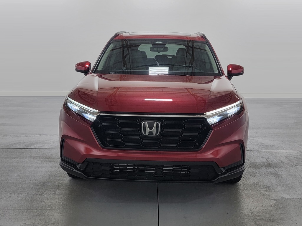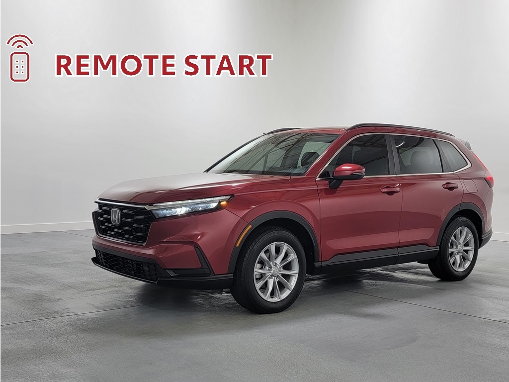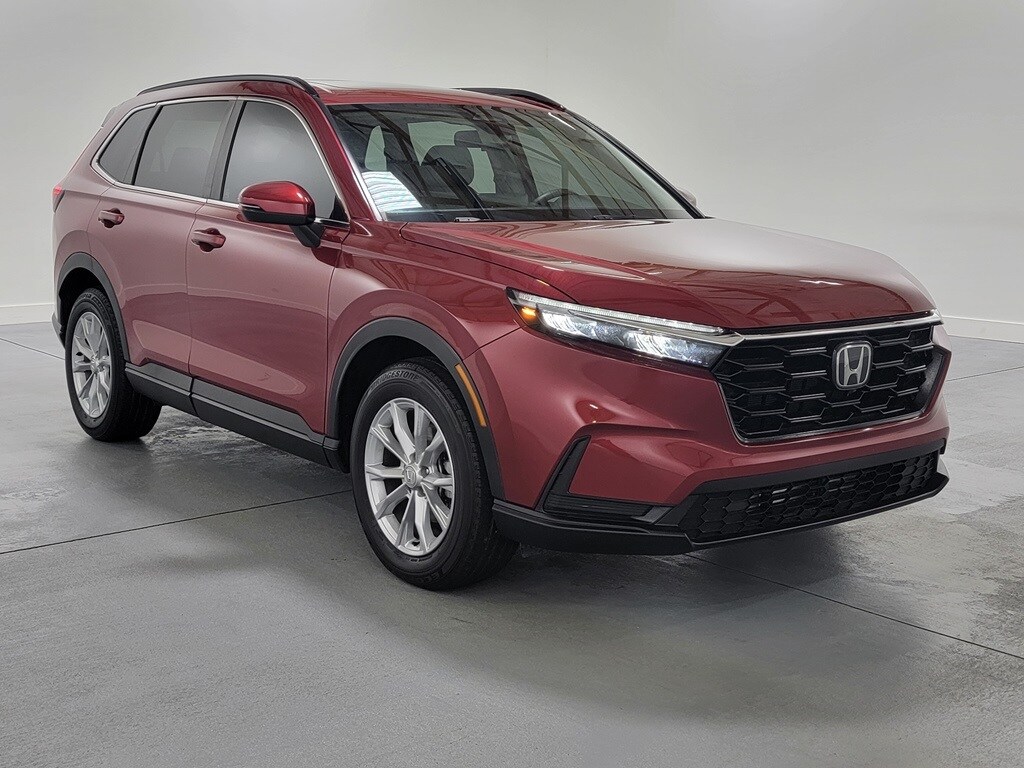 With Some Available Options Like 4-Wheel Disc Brakes, 5.64 Axle Ratio, 6 Speakers, ABS brakes, Adaptive Cruise Control: Adaptive Cruise Control (ACC) with Low-Speed Follow, Air Conditioning, Alloy wheels, Apple CarPlay/Android Auto, Auto High-beam Headlights, Automatic temperature control, Brake assist, Bumpers: body-color, Cloth Seat Trim, Compass, Delay-off headlights, Driver door bin, Driver vanity mirror, Dual front impact airbags, Dual front side impact airbags, Electronic Stability Control, Exterior Parking Camera Rear, Four wheel independent suspension, Front anti-roll bar, Front Bucket Seats, Front Center Armrest, Front dual zone A/C, Front reading lights, Fully automatic headlights, Heated door mirrors, Heated Front Bucket Seats, Heated front seats, Illuminated entry, Knee airbag, Low tire pressure warning, Occupant sensing airbag, Outside temperature display, Overhead airbag, Overhead console, Panic alarm, Passenger door bin, Passenger vanity mirror, Power door mirrors, Power driver seat, Power moonroof, Power steering, Power windows, Radio data system, Radio: 240-Watt AM/FM Audio System, Rear anti-roll bar, Rear reading lights, Rear seat center armrest, Rear side impact airbag, Rear window defroster, Rear window wiper, Remote keyless entry, Security system, Speed control, Speed-sensing steering, Speed-Sensitive Wipers, Split folding rear seat, Spoiler, Steering wheel mounted audio controls, Tachometer, Telescoping steering wheel, Tilt steering wheel, Traction control, Trip computer, Turn signal indicator mirrors, Variably intermittent wipers, and Wheels: 18" Sparkle Silver Metallic. Red 2023 Honda CR-V EX 4D Sport Utility 1.5L I4 DOHC 16V 27/32 City/Highway MPG AWD Automatic