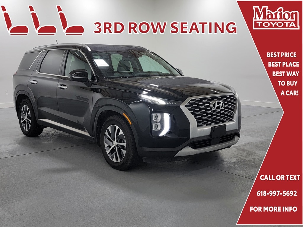 With Some Available Options Like 3.648 Axle Ratio, 3rd row seats: split-bench, 4-Wheel Disc Brakes, 6 Speakers, ABS brakes, Air Conditioning, Alloy wheels, AM/FM radio, Apple CarPlay & Android Auto, Auto High-beam Headlights, Auto-dimming Rear-View mirror, Automatic temperature control, Brake assist, Bumpers: body-color, Cargo Net, Cargo Tray, Carpeted Floor Mats, Delay-off headlights, Driver door bin, Driver vanity mirror, Dual front impact airbags, Dual front side impact airbags, Electronic Stability Control, Four wheel independent suspension, Front anti-roll bar, Front Bucket Seats, Front Center Armrest, Front dual zone A/C, Front reading lights, Fully automatic headlights, Garage door transmitter: HomeLink, Heated door mirrors, Heated Front Bucket Seats, Heated front seats, Illuminated entry, Knee airbag, Low tire pressure warning, Mudguards, Occupant sensing airbag, Outside temperature display, Overhead airbag, Overhead console, Panic alarm, Passenger door bin, Passenger vanity mirror, Power door mirrors, Power driver seat, Power steering, Power Sunroof P5, Power windows, Radio data system, Radio: AM/FM/MP3 Display Audio, Rear air conditioning, Rear anti-roll bar, Rear window defroster, Rear window wiper, Reclining 3rd row seat, Remote keyless entry, Security system, Speed control, Speed-sensing steering, Split folding rear seat, Spoiler, Stain Resistant Cloth Seat Trim, Steering wheel mounted audio controls, Sunroof, Tachometer, Telescoping steering wheel, Tilt steering wheel, Traction control, Trip computer, Turn signal indicator mirrors, Variably intermittent wipers, and Wheels: 18" x 7.5J Machine Finish Alloy. Becketts Black 2020 Hyundai Palisade SEL 4D Sport Utility V6 19/26 City/Highway MPG FWD Automatic