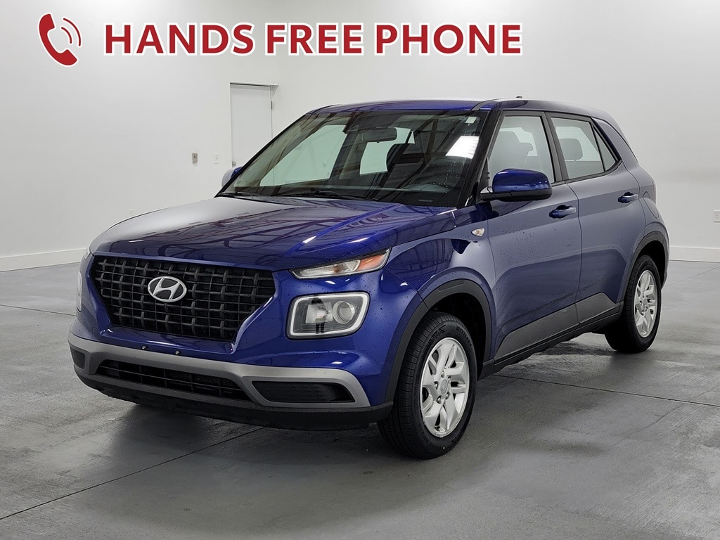 With Some Available Options Like Option Group 01, 4 Speakers, 6.052 Axle Ratio, ABS brakes, Air Conditioning, Alloy wheels, AM/FM radio, Apple CarPlay & Android Auto, Auto High-beam Headlights, Brake assist, Bumpers: body-color, Cargo Net, Cargo Tray, Carpeted Floor Mats, Cloth Seat Trim, Delay-off headlights, Driver door bin, Driver vanity mirror, Dual front impact airbags, Dual front side impact airbags, Electronic Stability Control, Front anti-roll bar, Front Bucket Seats, Front wheel independent suspension, Fully automatic headlights, Illuminated entry, Low tire pressure warning, Occupant sensing airbag, Outside temperature display, Overhead airbag, Overhead console, Panic alarm, Passenger door bin, Passenger vanity mirror, Power door mirrors, Power steering, Power windows, Radio: AM/FM/HD Display Audio, Rear Bumper Applique, Rear window defroster, Rear window wiper, Remote keyless entry, Security system, Speed control, Speed-sensing steering, Split folding rear seat, Spoiler, Steering wheel mounted audio controls, Tachometer, Telescoping steering wheel, Tilt steering wheel, Traction control, Trip computer, Variably intermittent wipers, and Wheels: 6.0J x 15" Alloy. Intense Blue 2021 Hyundai Venue SE 4D Sport Utility I4 30/33 City/Highway MPG FWD Automatic