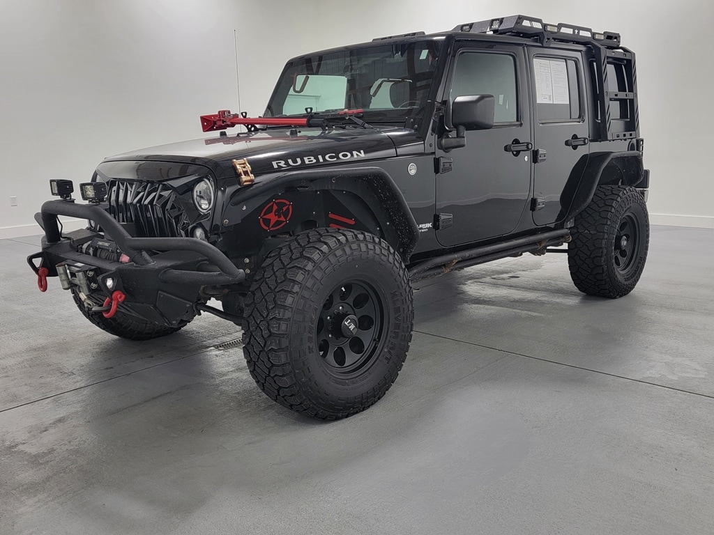 With Some Available Options Like Connectivity Group (Tire Pressure Monitoring Display, Uconnect Voice Command w/Bluetooth, and Vehicle Information Center), Quick Order Package 24R, 17" x 7.5" Polished Mineral Gray Wheels, 4-Wheel Disc Brakes, 4.10 Rear Axle Ratio, 8 Speakers, ABS brakes, Add 4.10 Axle Ratio, Air Conditioning, Alloy wheels, AM/FM radio: SiriusXM, Audio Jack Input for Mobile Devices, Auto-dimming Rear-View mirror, Black 3-Piece Hard Top, Brake assist, CD player, Cloth Seats w/Adjustable Head Restraints, Compass, Delete Sunrider Soft Top, Driver door bin, Driver Height Adjuster Seat, Driver vanity mirror, Dual front impact airbags, Electronic Stability Control, Freedom Panel Storage Bag, Freedom Top Hard Top Headliner, Front anti-roll bar, Front Bucket Seats, Front Center Armrest w/Storage, Front fog lights, Front reading lights, Front Seat Back Map Pockets, Fully automatic headlights, Heated door mirrors, Illuminated entry, Integrated roll-over protection, Leather steering wheel, Low tire pressure warning, MOPAR Slush Mats, Occupant sensing airbag, Outside temperature display, Panic alarm, Passenger door bin, Passenger vanity mirror, Performance Suspension, Power door mirrors, Power steering, Power windows, R1234YF A/C Refrigerant, Radio data system, Radio: 130, Rear anti-roll bar, Rear Window Defroster, Rear Window Wiper/Washer, Remote keyless entry, Remote Start System, Security system, Speed control, Split folding rear seat, Steering wheel mounted audio controls, Sunrider Soft Top, Swing Gate Reinforcement, Tachometer, Tilt steering wheel, Traction control, Trip computer, and Variably intermittent wipers. Black Clearcoat 2018 Jeep Wrangler JK Unlimited Rubicon 4D Sport Utility 3.6L V6 24V VVT 16/20 City/Highway MPG 4WD Automatic