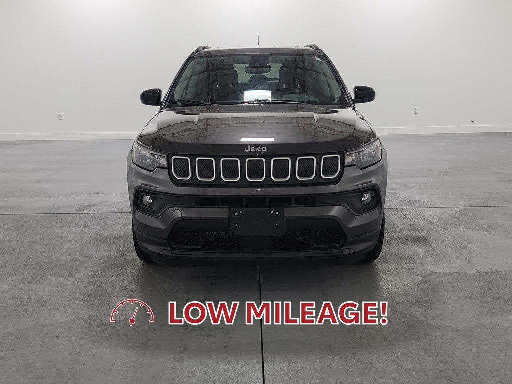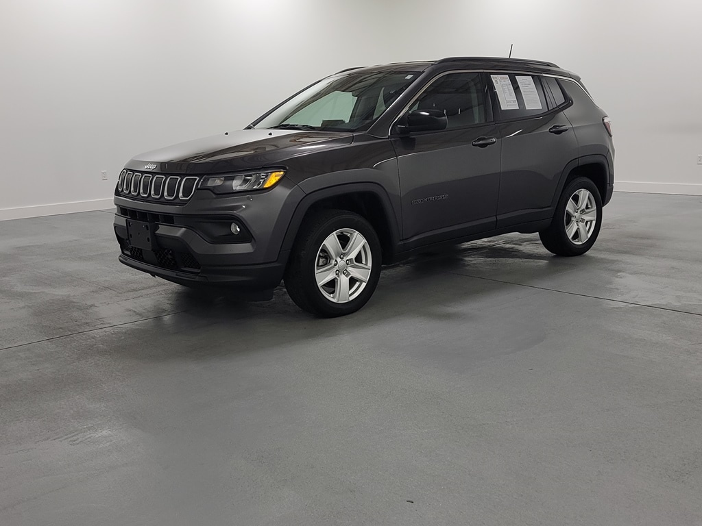 With Some Available Options Like MOPAR Interior Protection Package (MOPAR All-Weather Floor Mats and MOPAR Molded Cargo Tray), Quick Order Package 2GJ, 17" x 7" Painted Aluminum Wheels, 3.73 Axle Ratio, 4-Wheel Disc Brakes, 6 Speakers, ABS brakes, Air Conditioning, Alloy wheels, AM/FM radio: SiriusXM, Anti-whiplash front head restraints, Auto High-beam Headlights, Brake assist, Bumpers: body-color, Compass, Delay-off headlights, Driver door bin, Driver vanity mirror, Dual front impact airbags, Dual front side impact airbags, Electronic Stability Control, Emergency communication system: SiriusXM Guardian, Four wheel independent suspension, Front anti-roll bar, Front Bucket Seats, Front Center Armrest w/Storage, Front fog lights, Front License Plate Bracket, Front reading lights, Fully automatic headlights, Heated door mirrors, Illuminated entry, Knee airbag, Leather Shift Knob, Low tire pressure warning, Occupant sensing airbag, Outside temperature display, Overhead airbag, Overhead console, Panic alarm, ParkView Rear Back-Up Camera, Passenger door bin, Passenger vanity mirror, Power door mirrors, Power steering, Power windows, Premium Cloth/Vinyl Bucket Seats, Radio: Uconnect 5 w/10.1" Display, Radio: Uconnect 5 w/8.4" Display (DISC), Rear anti-roll bar, Rear seat center armrest, Rear window defroster, Rear window wiper, Remote keyless entry, Roof rack: rails only, Speed control, Split folding rear seat, Spoiler, Steering wheel mounted audio controls, Tachometer, Telescoping steering wheel, Tilt steering wheel, Traction control, Trip computer, and Variably intermittent wipers. Granite Crystal Metallic Clearcoat 2022 Jeep Compass Latitude 4D Sport Utility 2.4L I4 22/30 City/Highway MPG 4WD Automatic