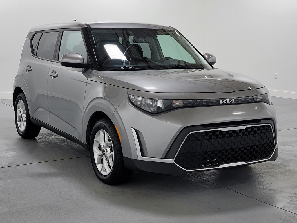 With Some Available Options Like LX Technology Package (16" Alloy Wheels, Blind-Spot Collision-Avoidance Assist, Lane Change Assist, and Rear Cross-Traffic Collision Avoidance Assist), 16" Steel Wheels, 4-Wheel Disc Brakes, 6 Speakers, ABS brakes, Air Conditioning, AM/FM radio, Apple CarPlay & Android Auto, Auto High-beam Headlights, Brake assist, Bumpers: body-color, Carpeted Floor Mats, Compass, Delay-off headlights, Driver door bin, Driver vanity mirror, Dual front impact airbags, Dual front side impact airbags, Electronic Stability Control, Exterior Parking Camera Rear, Front anti-roll bar, Front Bucket Seats, Front Center Armrest, Front reading lights, Front wheel independent suspension, Fully automatic headlights, Illuminated entry, Low tire pressure warning, Occupant sensing airbag, Outside temperature display, Overhead airbag, Overhead console, Panic alarm, Passenger door bin, Passenger vanity mirror, Power door mirrors, Power steering, Power windows, Radio data system, Radio: AM/FM/MP3/HD Audio System, Rear window defroster, Rear window wiper, Remote keyless entry, Speed control, Speed-sensing steering, Split folding rear seat, Steering wheel mounted audio controls, Tachometer, Telescoping steering wheel, Tilt steering wheel, Traction control, Trip computer, Variably intermittent wipers, and Woven & Tricot Cloth Seat Trim. Steel Gray 2023 Kia Soul LX 4D Hatchback 2.0L I4 DOHC 29/35 City/Highway MPG FWD Automatic