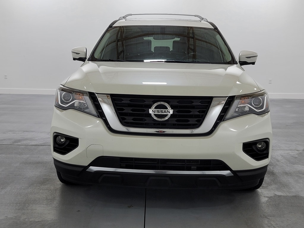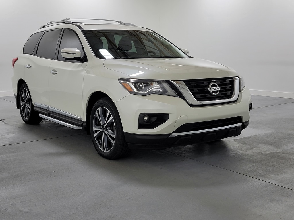 With Some Available Options Like Cargo Package (First Aid Kit and Tonneau Cover), 13 Speakers, 3rd row seats: bench, 4-Wheel Disc Brakes, 5.25 Axle Ratio, ABS brakes, Air Conditioning, Alloy wheels, AM/FM radio: SiriusXM, AM/FM/CD Audio System, Auto tilt-away steering wheel, Auto-dimming Rear-View mirror, Automatic temperature control, Black Mold-in-Color Splash Guards, Blind Spot Warning, Bodyside moldings, Bose Premium Audio System, Brake assist, Bumpers: body-color, Carpeted Floor Mats (4-pc Set), CD player, Climate Controlled Front Bucket Seats, Cross Bars, Delay-off headlights, Driver door bin, Driver vanity mirror, Dual front impact airbags, Dual front side impact airbags, Electronic Stability Control, Emergency communication system: NissanConnect Services, Four wheel independent suspension, Front anti-roll bar, Front Bucket Seats, Front Center Armrest, Front dual zone A/C, Front fog lights, Front Illuminated Kick Plates, Front reading lights, Fully automatic headlights, Garage door transmitter: HomeLink, Heated door mirrors, Heated front seats, Heated rear seats, Heated steering wheel, Illuminated entry, Leather Seating Surfaces, Leather Shift Knob, Leather steering wheel, Low tire pressure warning, Memory seat, Navigation System, NissanConnect w/Navigation & Services, Occupant sensing airbag, Outside temperature display, Overhead airbag, Overhead console, Panic alarm, Passenger door bin, Passenger vanity mirror, Power door mirrors, Power driver seat, Power Liftgate, Power moonroof, Power passenger seat, Power steering, Power windows, Radio data system, Rear air conditioning, Rear anti-roll bar, Rear Bumper Protector, Rear Parking Sensors, Rear reading lights, Rear seat center armrest, Rear window defroster, Rear window wiper, Reclining 3rd row seat, Remote keyless entry, Roof rack: rails only, Running Boards, Security system, SiriusXM Traffic, Speed control, Speed-sensing steering, Speed-Sensitive Wipers, Split folding rear seat, Spoiler, Steering wheel memory, Steering wheel mounted audio controls, Tachometer, Telescoping steering wheel, Tilt steering wheel, Traction control, Trip computer, Turn signal indicator mirrors, Variably intermittent wipers, Ventilated front seats, and Wheels: 20" x 7.5 J Machined Aluminum-Alloy. Pearl White Tricoat 2019 Nissan Pathfinder Platinum 4D Sport Utility V6 20/27 City/Highway MPG FWD Automatic