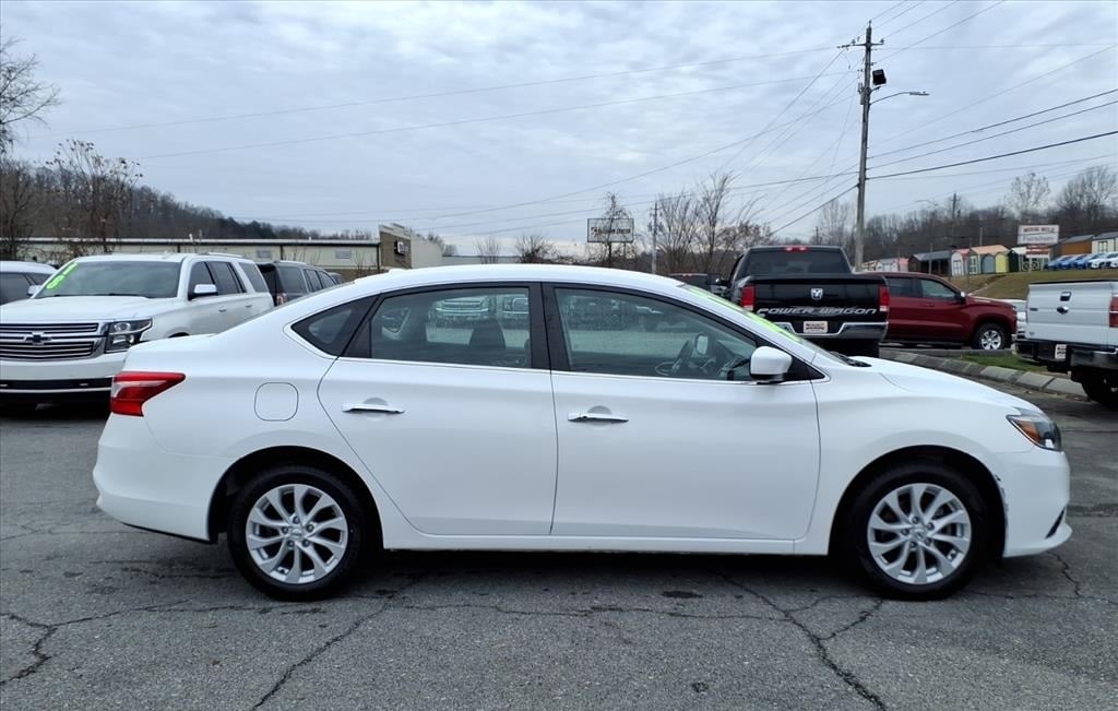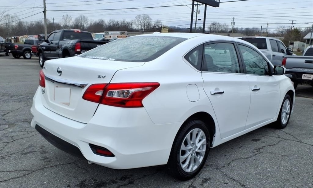 With Some Available Options Like 16" Aluminum Alloy Wheels, 6 Speakers, 6-Speaker Audio System, 6-Way Adjustable Driver's Seat, ABS brakes, Air Conditioning, Alloy wheels, AM/FM radio: SiriusXM, Automatic temperature control, Brake assist, Bumpers: body-color, Carpeted Floor Mats w/Trunk Mat, Delay-off headlights, Driver door bin, Driver vanity mirror, Dual front impact airbags, Dual front side impact airbags, Electronic Stability Control, Exterior Parking Camera Rear, Front anti-roll bar, Front Bucket Seats, Front Center Armrest, Front dual zone A/C, Front reading lights, Front wheel independent suspension, Fully automatic headlights, Illuminated entry, Low tire pressure warning, Occupant sensing airbag, Outside temperature display, Overhead airbag, Overhead console, Panic alarm, Passenger door bin, Passenger vanity mirror, Power door mirrors, Power steering, Power windows, Premium Cloth Seat Trim, Radio data system, Radio: AM/FM/Aux-In Audio System, Rear anti-roll bar, Rear seat center armrest, Rear USB Ports (H11), Rear window defroster, Remote keyless entry, Security system, Speed control, Speed-sensing steering, Split folding rear seat, Steering wheel mounted audio controls, Tachometer, Telescoping steering wheel, Tilt steering wheel, Traction control, Trip computer, and Variably intermittent wipers. Fresh Powder 2019 Nissan Sentra SV 4D Sedan 1.8L 4-Cylinder DOHC 16V 29/37 City/Highway MPG FWD Automatic