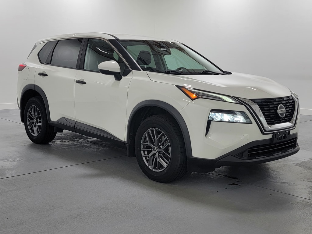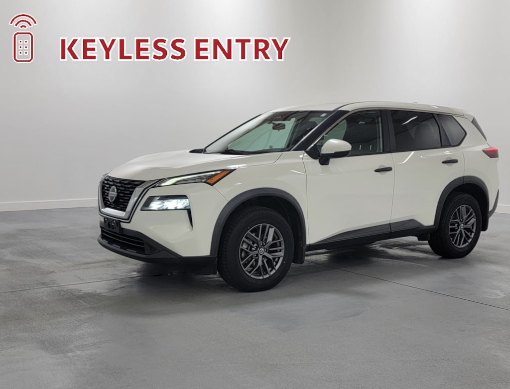 With Some Available Options Like 17" Aluminum Alloy Wheels, 4 Speakers, 4-Wheel Disc Brakes, 5.604 Axle Ratio, ABS brakes, Air Conditioning, Alloy wheels, AM/FM Radio, AM/FM radio, Auto High-beam Headlights, Blind Spot Warning, Brake assist, Bumpers: body-color, Cloth Seat Trim, Delay-off headlights, Driver door bin, Driver vanity mirror, Dual front impact airbags, Dual front side impact airbags, Electronic Stability Control, Four wheel independent suspension, Front anti-roll bar, Front Bucket Seats, Front Center Armrest, Front reading lights, Fully automatic headlights, Illuminated entry, Knee airbag, Low tire pressure warning, NissanConnect featuring Apple CarPlay and Android Auto, Occupant sensing airbag, Outside temperature display, Overhead airbag, Overhead console, Panic alarm, Passenger door bin, Passenger vanity mirror, Power door mirrors, Power steering, Power windows, Radio data system, Rear anti-roll bar, Rear Parking Sensors, Rear seat center armrest, Rear side impact airbag, Rear window defroster, Rear window wiper, Remote keyless entry, Speed control, Speed-Sensitive Wipers, Split folding rear seat, Spoiler, Steering wheel mounted audio controls, Tachometer, Telescoping steering wheel, Tilt steering wheel, Traction control, Trip computer, and Variably intermittent wipers. White 2021 Nissan Rogue S 4D Sport Utility 2.5L I4 DOHC 16V 26/33 City/Highway MPG AWD Automatic
