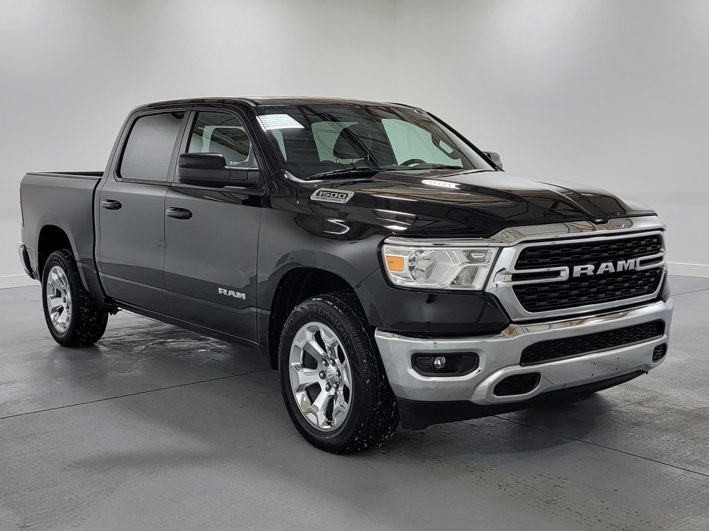 Recent Arrival! With Some Available Options Like Quick Order Package 27Z Big Horn (Big Horn Badge), 3 Rear Seat Head Restraints, 3.21 Rear Axle Ratio, 4 Way Front Headrests, 4-Wheel Disc Brakes, 48V Belt Starter Generator, 6 Speakers, ABS brakes, Air Conditioning, Alloy wheels, AM/FM radio, Black Exterior Mirrors, Brake assist, Bumpers: chrome, Cloth Bench Seat, Compass, Convex Wide-Angle Mirror Insert, Delay-off headlights, Driver door bin, Dual front impact airbags, Dual front side impact airbags, Electronic Stability Control, Emergency communication system: SiriusXM Guardian, Front anti-roll bar, Front Center Armrest w/Storage, Front fog lights, Front reading lights, Front Seat Back Map Pockets, Front wheel independent suspension, Fully automatic headlights, Global Telematics Box Module (TBM), GPS Antenna Input, Heated door mirrors, Heavy-Duty Engine Cooling, Illuminated entry, Integrated Voice Command w/Bluetooth, Leather steering wheel, Low tire pressure warning, Manufacturer's Statement of Origin, MOPAR Front & Rear Rubber Floor Mats, Occupant sensing airbag, Outside temperature display, Overhead airbag, Overhead console, Panic alarm, ParkView Rear Back-Up Camera, Passenger door bin, Passenger vanity mirror, Power door mirrors, Power steering, Power windows, Radio data system, Radio: Uconnect 3 w/5" Display, Rear 60/40 Folding Seat, Rear anti-roll bar, Rear seat center armrest, Rear step bumper, Remote keyless entry, Speed control, Split folding rear seat, Steering wheel mounted audio controls, Tachometer, Telescoping steering wheel, Tilt steering wheel, Traction control, Trip computer, Variably intermittent wipers, Voltmeter, Wheels: 18" x 8" Cast-Aluminum Painted, and Wheels: 20" x 9" Aluminum Chrome Clad (WRK) Diamond Black Crystal Pearlcoat 2022 Ram 1500 Big Horn/Lone Star 4D Crew Cab HEMI 5.7L V8 Multi Displacement VVT 15/21 City/Highway MPG 4WD Automatic