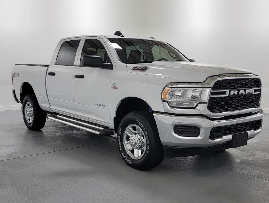With Some Available Options Like Chrome Appearance Group (Bright Front Bumper, Bright Rear Bumper, Center Hub, Chrome Grille Surround, Matte Black Mesh Grille w/Chrome, and Wheels: 18" x 8.0" Steel Chrome Clad), Cold Weather Group (Engine Block Heater and MOPAR Winter Front Grille Cover), Convenience Group (Air Conditioning ATC w/Dual Zone Control, Auto-Dimming Rear-View Mirror, Cluster 3.5" TFT Color Display, and Tinted Acoustic Windshield Glass), Off Road Package (Front Performance Tuned Shock Absorbers, Hill Descent Control, Off Road Decal, Rear Performance Tuned Shock Absorbers, and Tow Hooks), Quick Order Package 2HA Tradesman, Tradesman Level 2 Equipment Group (2 Way Rear Headrest Seat, 4 Way Front Headrests, 40/20/40 Split Bench Seat, Carpet Floor Covering, Cloth 40/20/40 Bench Seat, Front Armrest w/Cupholders, Manual Adjust 4-Way Driver Seat, Manual Adjust 4-Way Front Passenger Seat, Rear Folding Seat, Rear Power Sliding Window, Rear Window Defroster, SiriusXM Satellite Radio, and Storage Tray), 115V Auxiliary Front Power Outlet, 17" x 7.5" Steel Styled Wheels, 3.73 Axle Ratio, 4-Wheel Disc Brakes, 400W Inverter, 4G LTE Wi-Fi Hot Spot, 6 Speakers, 8.4" Touchscreen Display, ABS brakes, Active Noise Control System, Air Conditioning, Alexa Built-In, All R1 High Radios, All Radio Equipped Vehicles, AM/FM radio, Anti-Spin Differential Rear Axle, Apple CarPlay, Black Exterior Mirrors, Brake assist, Cluster 7.0" TFT Color Display, Compass, Connected Travel & Traffic Services, Connectivity - US/Canada, Delay-off headlights, Disassociated Touchscreen Display, Driver door bin, Dual front impact airbags, Dual front side impact airbags, Electric Shift-On-The-Fly Transfer Case, Electronic Stability Control, Electronically Controlled Throttle, Emergency communication system: SiriusXM Guardian, Exterior 115V AC Outlet, Exterior Mirrors w/Heating Element, For Details, Visit DriveUconnect.com, For More Info, Call 800-643-2112, Front anti-roll bar, Front Center Armrest w/Storage, Front License Plate Bracket, Front reading lights, Fully automatic headlights, Global Telematics Box Module (TBM), Google Android Auto, GPS Antenna Input, GPS Navigation, HD Radio, Heated door mirrors, Heavy Duty Vinyl 40/20/40 Split Bench Seat, Illuminated entry, Integrated Center Stack Radio, Integrated Voice Command w/Bluetooth, LED Bed Lighting, Low tire pressure warning, MOPAR Spray In Bedliner, Occupant sensing airbag, Off-Road Information Pages, Outside temperature display, Overhead airbag, Overhead console, ParkView Rear Back-Up Camera, Passenger door bin, Passenger vanity mirror, Power door mirrors, Power steering, Power windows, Radio data system, Radio: Uconnect 3 w/5" Display, Radio: Uconnect 5 Nav w/8.4" Display, Rear anti-roll bar, Rear step bumper, Rear Wheelhouse Liners, Selectable Tire Fill Alert, SiriusXM Radio Service, SiriusXM w/360L, Speed control, Tachometer, Tilt steering wheel, Tip Start, Traction control, Variably intermittent wipers, Vendor Painted Cargo Box, Vendor Painted Cargo Box Tracking, and VoltmeteR. Bright White Clearcoat 2022 Ram 2500 Tradesman 4D Crew Cab Cummins 6.7L I6 Turbodiesel 4WD Automatic