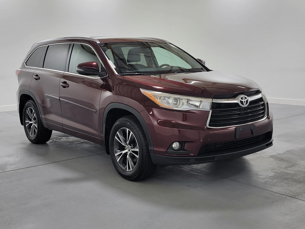 With Some Available Options Like 3rd row seats: split-bench, 4-Wheel Disc Brakes, 4.154 Axle Ratio, 6 Speakers, ABS brakes, Air Conditioning, Alloy wheels, AM/FM radio: SiriusXM, Auto-dimming Rear-View mirror, Automatic temperature control, Brake assist, Bumpers: body-color, CD player, Delay-off headlights, Driver door bin, Driver vanity mirror, Dual front impact airbags, Dual front side impact airbags, Electronic Stability Control, Exterior Parking Camera Rear, Four wheel independent suspension, Front anti-roll bar, Front Bucket Seats, Front Center Armrest, Front dual zone A/C, Front fog lights, Front reading lights, Fully automatic headlights, Garage door transmitter, Heated door mirrors, Heated front seats, Illuminated entry, Knee airbag, Leather Seat Material, Leather Shift Knob, Low tire pressure warning, Navigation System, Occupant sensing airbag, Outside temperature display, Overhead airbag, Overhead console, Panic alarm, Passenger door bin, Passenger vanity mirror, Power door mirrors, Power driver seat, Power Liftgate, Power moonroof, Power steering, Power windows, Radio: Entune Premium Audio w/Nav & App Suite, Rear air conditioning, Rear anti-roll bar, Rear reading lights, Rear window defroster, Rear window wiper, Reclining 3rd row seat, Remote keyless entry, Roof rack: rails only, Security system, Speed control, Speed-sensing steering, Split folding rear seat, Spoiler, Steering wheel mounted audio controls, Tachometer, Telescoping steering wheel, Tilt steering wheel, Traction control, Trip computer, Turn signal indicator mirrors, Variably intermittent wipers, and Wheels: 18" Split 5-Spoke Machined-Face Alloy. Red 2016 Toyota Highlander XLE V6 4D Sport Utility 3.5L V6 DOHC Dual VVT-i 24V 18/24 City/Highway MPG AWD Automatic