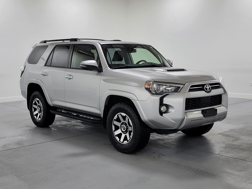 Recent Arrival! With Some Available Options Like 3.727 Axle Ratio, 4-Wheel Disc Brakes, 8 Speakers, ABS brakes, Air Conditioning, Alloy wheels, AM/FM radio: SiriusXM, Anti-whiplash front head restraints, Apple CarPlay/Android Auto, Auto High-beam Headlights, Auto-dimming Rear-View mirror, Black Roof Rails, Body Color Heated Mirrors, Brake assist, Bumpers: body-color, Compass, Driver door bin, Driver vanity mirror, Dual front impact airbags, Dual front side impact airbags, Electronic Stability Control, Emergency communication system: Safety Connect with 1-year trial, Exterior Parking Camera Rear, Front anti-roll bar, Front Bucket Seats, Front Center Armrest, Front fog lights, Front reading lights, Front wheel independent suspension, Garage Door Opener, Garage door transmitter: HomeLink, Heated door mirrors, Heated Front Bucket Seats, Heated front seats, Illuminated entry, Knee airbag, Leather Shift Knob, Low tire pressure warning, Occupant sensing airbag, Outside temperature display, Overhead airbag, Overhead console, Panic alarm, Passenger door bin, Passenger vanity mirror, Power door mirrors, Power driver seat, Power passenger seat, Power steering, Power windows, Radio: Premium Audio w/Dynamic Navigation, Rear anti-roll bar, Rear seat center armrest, Rear window defroster, Rear window wiper, Remote keyless entry, Roof rack: rails only, Security system, Softex Synthetic Leather Seat Trim, Speed control, Speed-sensing steering, Split folding rear seat, Spoiler, Steering wheel mounted audio controls, Tachometer, Telescoping steering wheel, Tilt steering wheel, Traction control, Trip computer, Turn signal indicator mirrors, Variably intermittent wipers, and Wheels: 17" x 7.5" 7-Spoke Unique Off-Road Alloy. Silver 2020 Toyota 4Runner TRD Off-Road Premium 4D Sport Utility 4.0L V6 SMPI DOHC 16/19 City/Highway MPG 4WD Automatic