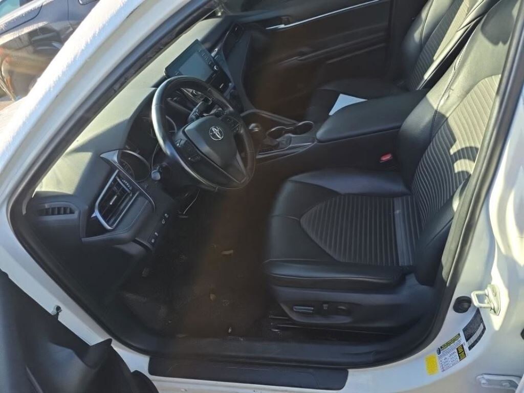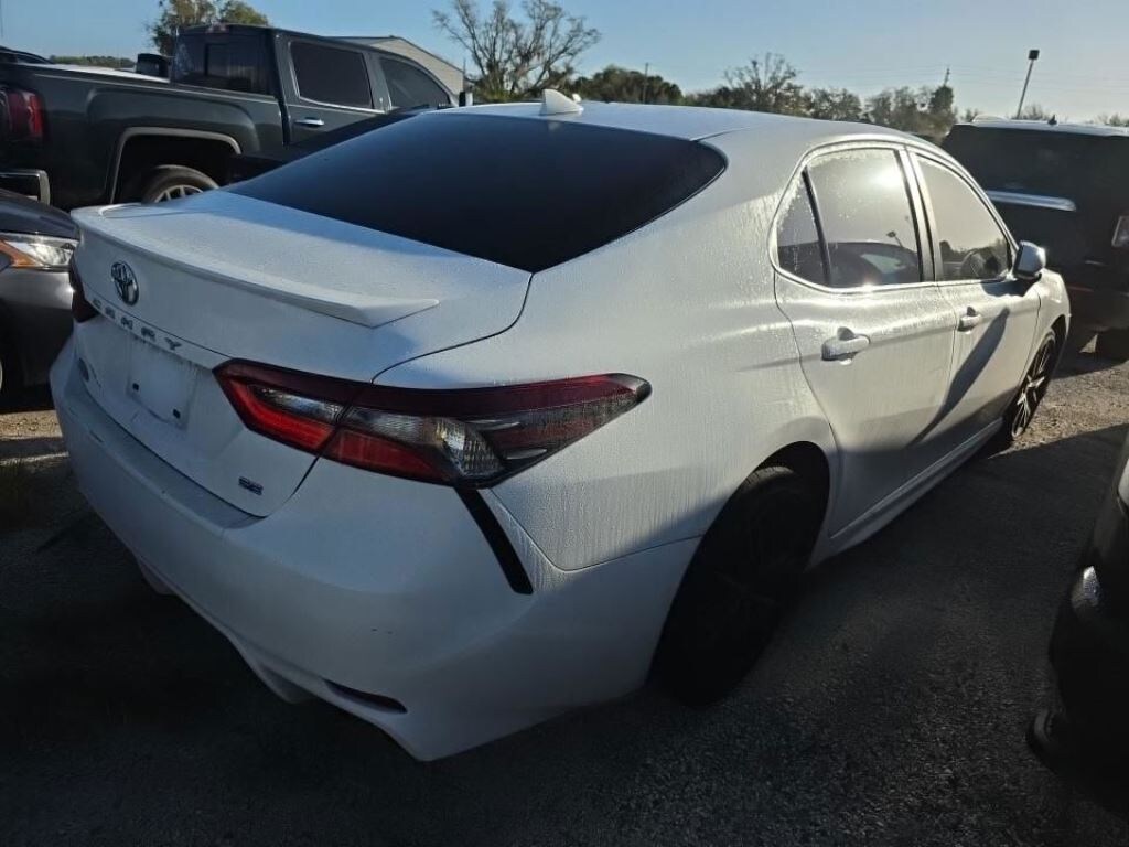 Recent Arrival! With Some Available Options Like 4-Wheel Disc Brakes, 6 Speakers, ABS brakes, Air Conditioning, Alloy wheels, AM/FM radio: SiriusXM, Apple CarPlay/Android Auto, Auto High-beam Headlights, Automatic temperature control, Brake assist, Bumpers: body-color, Delay-off headlights, Driver door bin, Driver vanity mirror, Dual front impact airbags, Dual front side impact airbags, Electronic Stability Control, Emergency communication system: Safety Connect with 1-year trial, Exterior Parking Camera Rear, Fabric Seat Trim w/Sport SofTex, Four wheel independent suspension, Front anti-roll bar, Front Bucket Seats, Front Center Armrest, Front reading lights, Fully automatic headlights, Illuminated entry, Knee airbag, Low tire pressure warning, Occupant sensing airbag, Outside temperature display, Overhead airbag, Overhead console, Panic alarm, Passenger door bin, Passenger vanity mirror, Power door mirrors, Power driver seat, Power steering, Power windows, Radio data system, Radio: AM/FM Audio System, Rear anti-roll bar, Rear seat center armrest, Rear side impact airbag, Rear window defroster, Remote keyless entry, Security system, Speed control, Speed-sensing steering, Split folding rear seat, Spoiler, Steering wheel mounted audio controls, Tachometer, Telescoping steering wheel, Tilt steering wheel, Traction control, Trip computer, Variably intermittent wipers, and Wheels: 8.0J x 18" Black Machined-Finish Alloy. White 2021 Toyota Camry SE 4D Sedan 2.5L I4 DOHC 16V 28/39 City/Highway MPG FWD Automatic